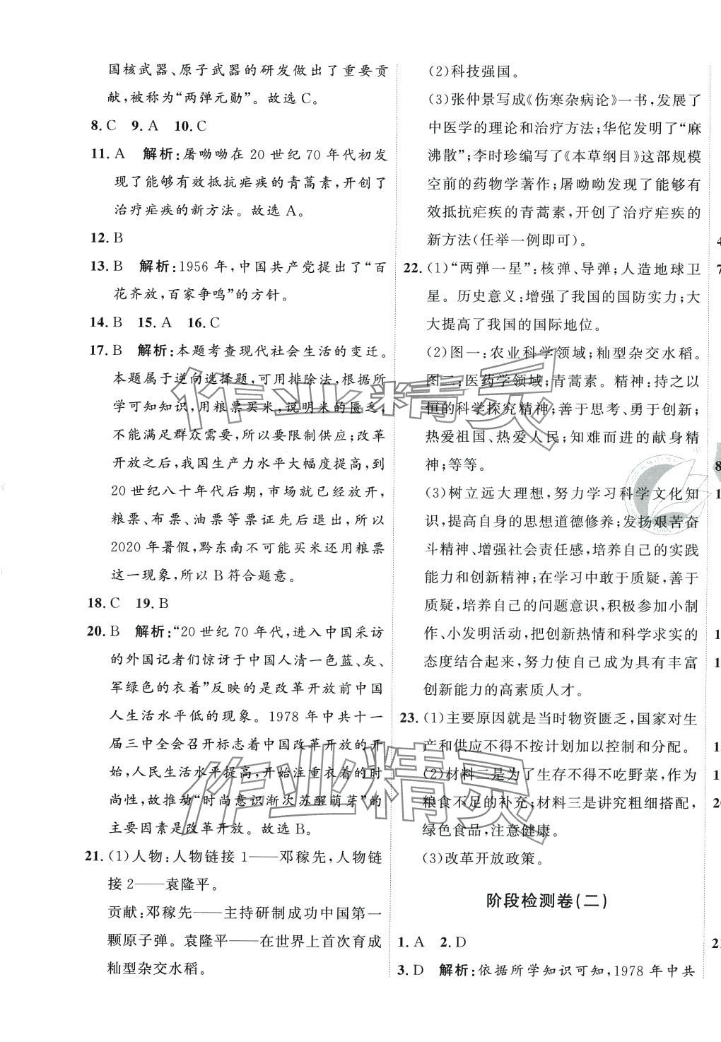 注:目前有些书本章节名称可能整理的还不是很完善,但都是按照顺序排列的,请同学们按照顺序仔细查找。练习册 2024年优加密卷八年级历史下册人教版 答案主要是用来给同学们做完题方便对答案用的,请勿直接抄袭。