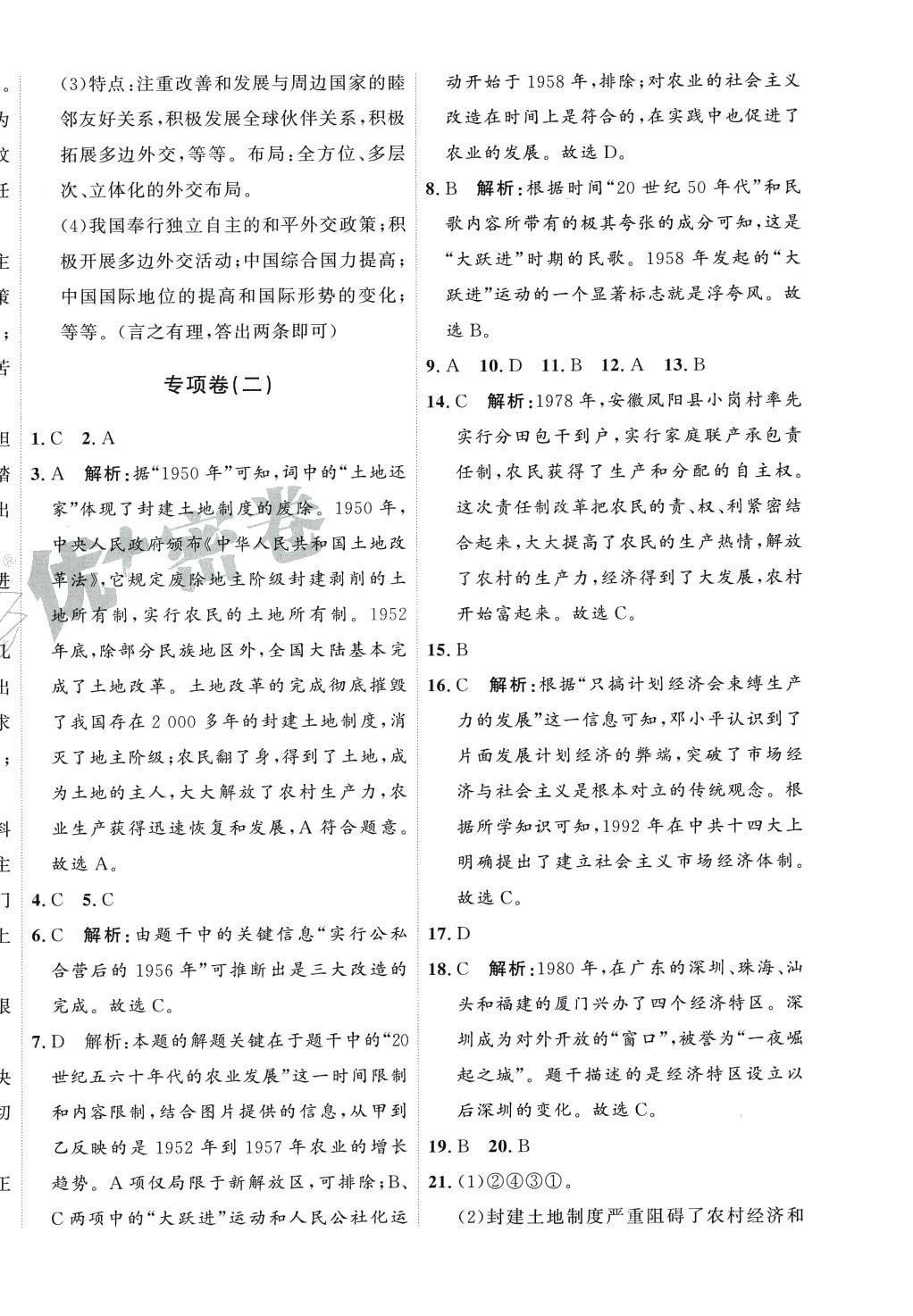 注:目前有些书本章节名称可能整理的还不是很完善,但都是按照顺序排列的,请同学们按照顺序仔细查找。练习册 2024年优加密卷八年级历史下册人教版 答案主要是用来给同学们做完题方便对答案用的,请勿直接抄袭。