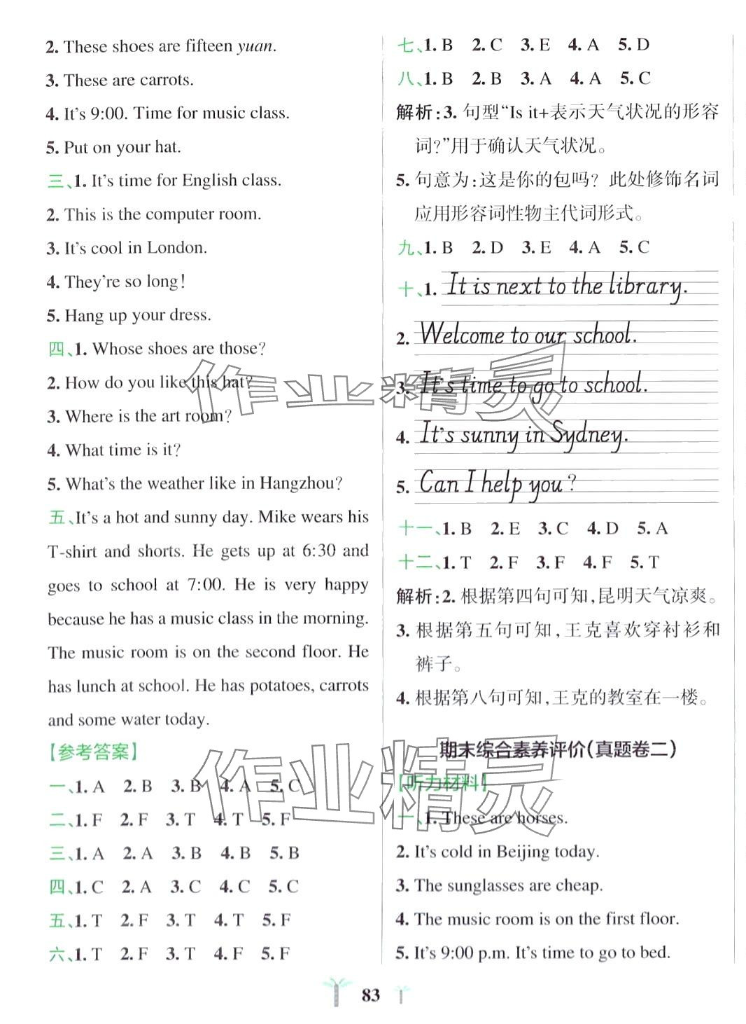 注:目前有些书本章节名称可能整理的还不是很完善,但都是按照顺序排列的,请同学们按照顺序仔细查找。练习册 2024年小学学霸冲A卷四年级英语下册人教版 答案主要是用来给同学们做完题方便对答案用的,请勿直接抄袭。
