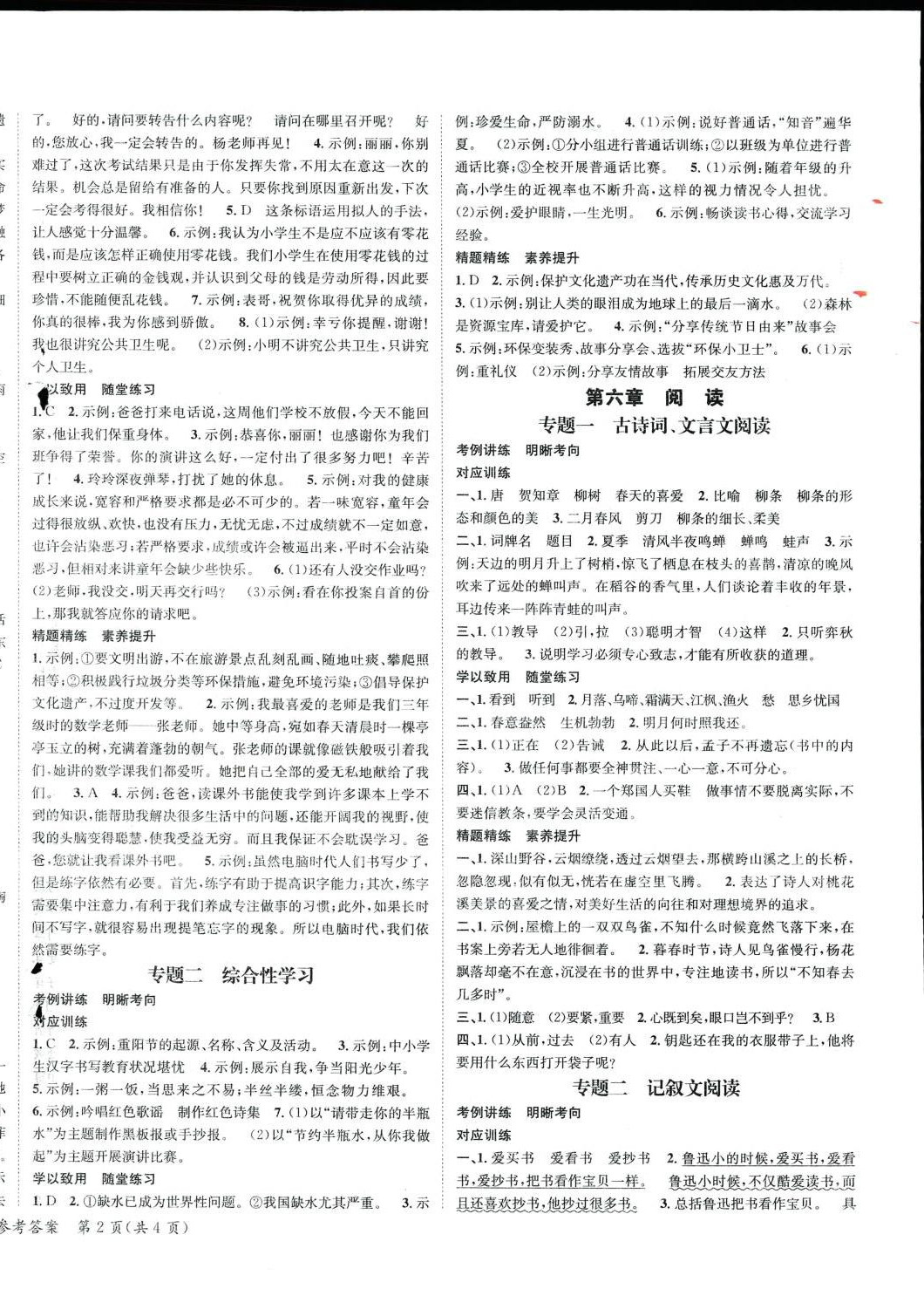 注:目前有些书本章节名称可能整理的还不是很完善,但都是按照顺序排列的,请同学们按照顺序仔细查找。练习册 2024年小考总动员语文 答案主要是用来给同学们做完题方便对答案用的,请勿直接抄袭。