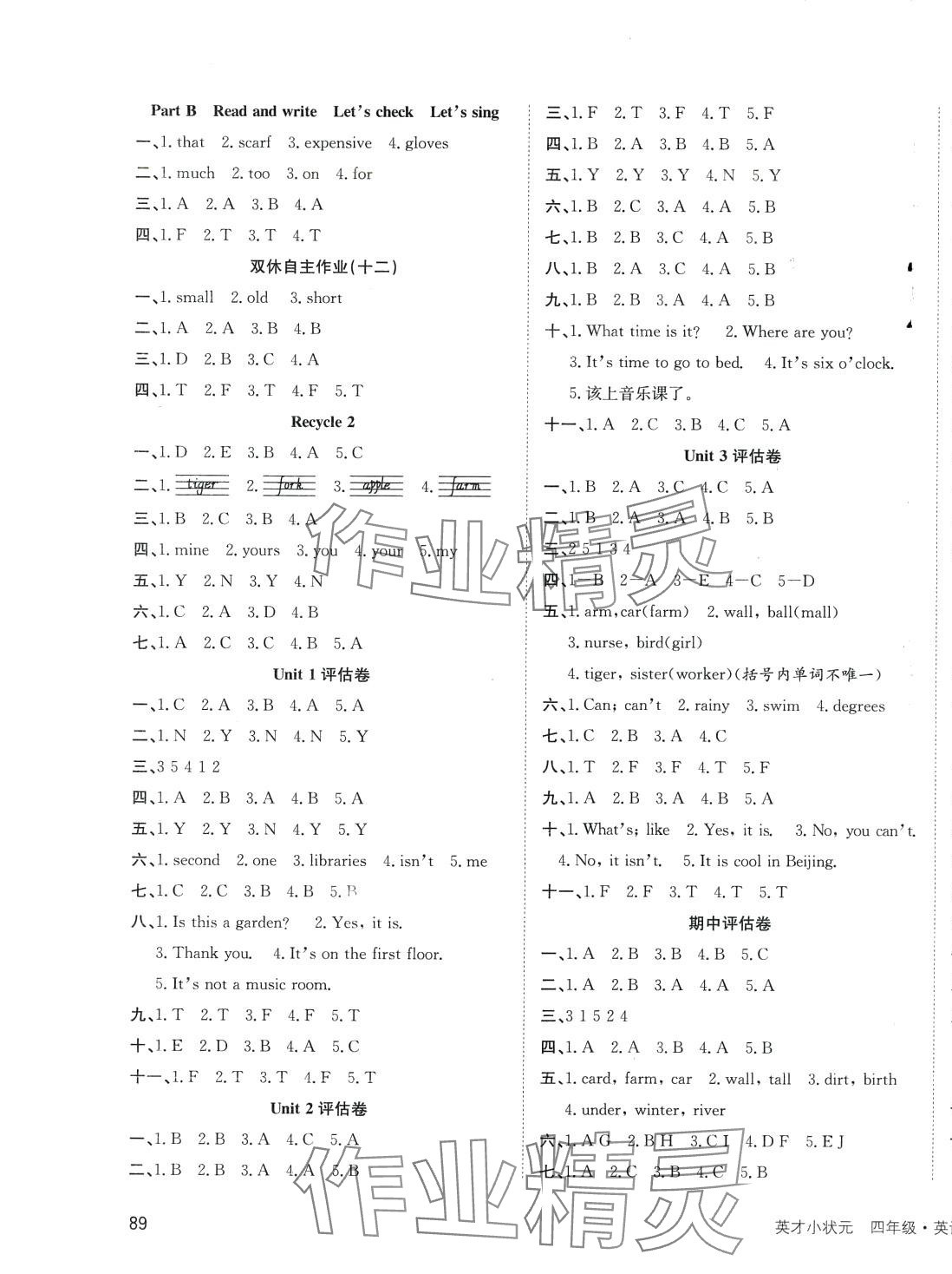注:目前有些书本章节名称可能整理的还不是很完善,但都是按照顺序排列的,请同学们按照顺序仔细查找。练习册 2024年英才小状元四年级英语下册人教版 答案主要是用来给同学们做完题方便对答案用的,请勿直接抄袭。
