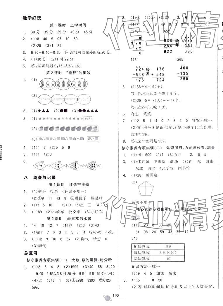 注:目前有些书本章节名称可能整理的还不是很完善,但都是按照顺序排列的,请同学们按照顺序仔细查找。练习册 2024年世纪金榜金榜小博士二年级数学下册北师大版 答案主要是用来给同学们做完题方便对答案用的,请勿直接抄袭。