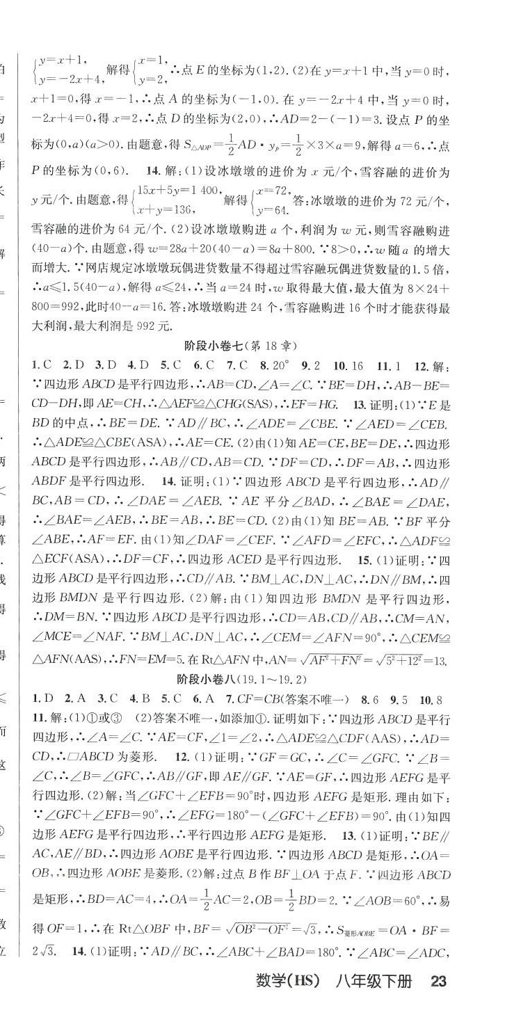 注:目前有些书本章节名称可能整理的还不是很完善,但都是按照顺序排列的,请同学们按照顺序仔细查找。练习册 2024年课时夺冠八年级数学下册华师大版 答案主要是用来给同学们做完题方便对答案用的,请勿直接抄袭。