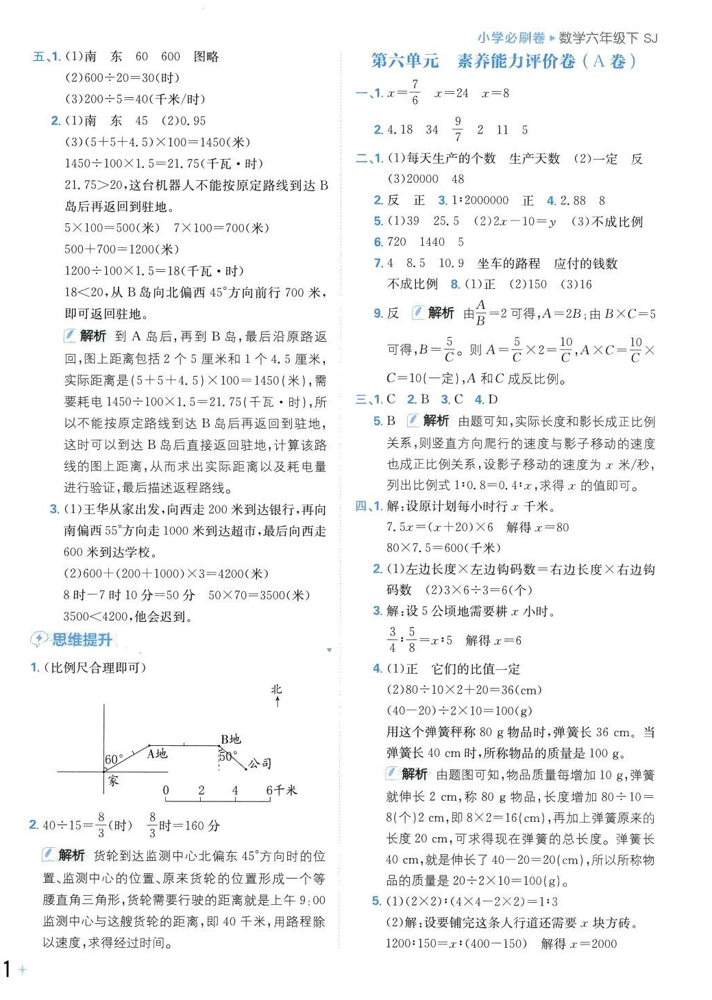 注:目前有些书本章节名称可能整理的还不是很完善,但都是按照顺序排列的,请同学们按照顺序仔细查找。练习册 2024年小学必刷卷六年级数学下册苏教版 答案主要是用来给同学们做完题方便对答案用的,请勿直接抄袭。