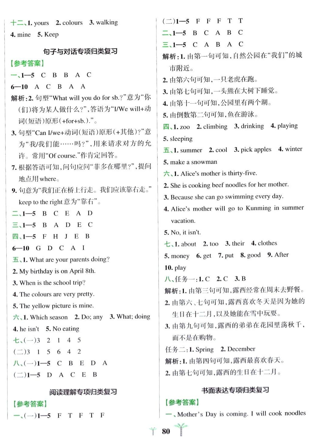 注:目前有些书本章节名称可能整理的还不是很完善,但都是按照顺序排列的,请同学们按照顺序仔细查找。练习册 2024年小学学霸冲A卷五年级英语下册人教版 答案主要是用来给同学们做完题方便对答案用的,请勿直接抄袭。