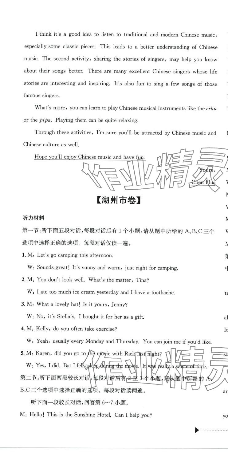 注:目前有些书本章节名称可能整理的还不是很完善,但都是按照顺序排列的,请同学们按照顺序仔细查找。练习册 2024年最新3年中考利剑浙江省中考试卷汇编英语 答案主要是用来给同学们做完题方便对答案用的,请勿直接抄袭。