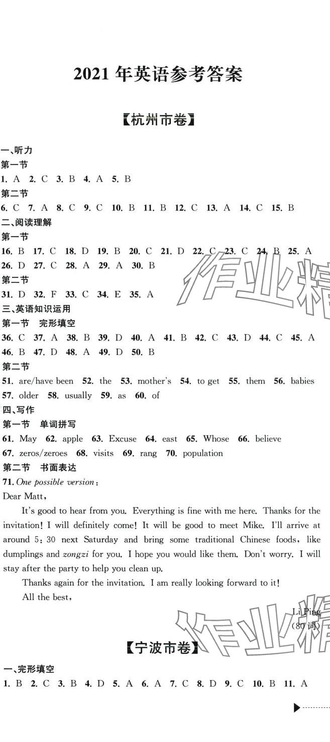 注:目前有些书本章节名称可能整理的还不是很完善,但都是按照顺序排列的,请同学们按照顺序仔细查找。练习册 2024年最新3年中考利剑浙江省中考试卷汇编英语 答案主要是用来给同学们做完题方便对答案用的,请勿直接抄袭。