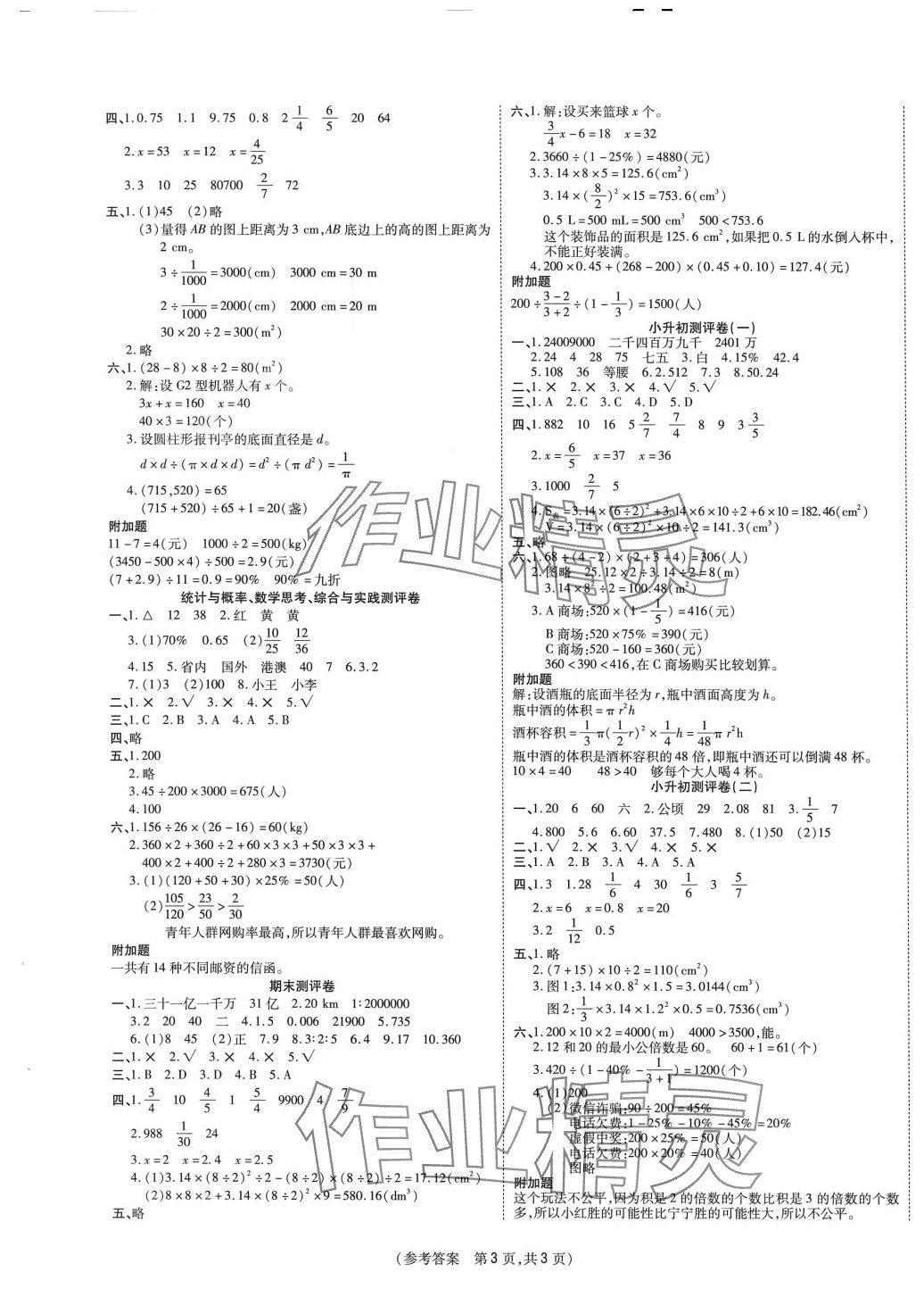 注:目前有些书本章节名称可能整理的还不是很完善,但都是按照顺序排列的,请同学们按照顺序仔细查找。练习册 2024年激活思维智能优选卷六年级数学下册人教版 答案主要是用来给同学们做完题方便对答案用的,请勿直接抄袭。