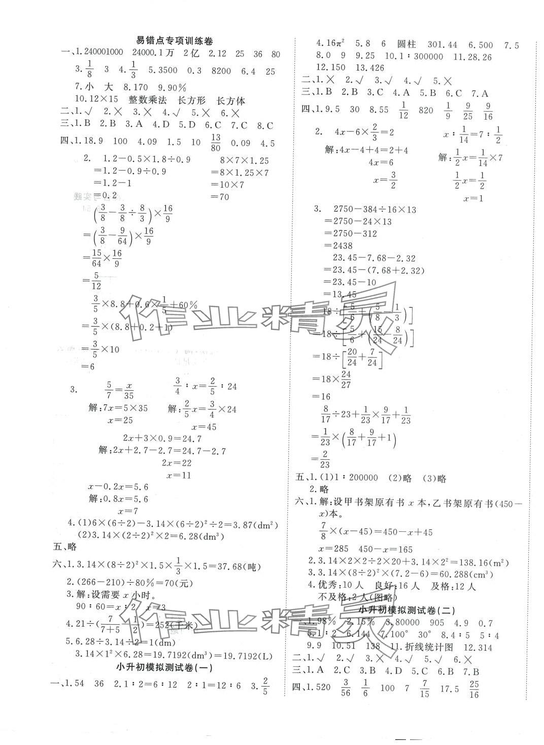 《2024年学海金卷小学夺冠单元检测卷六年级数学下册人教版》