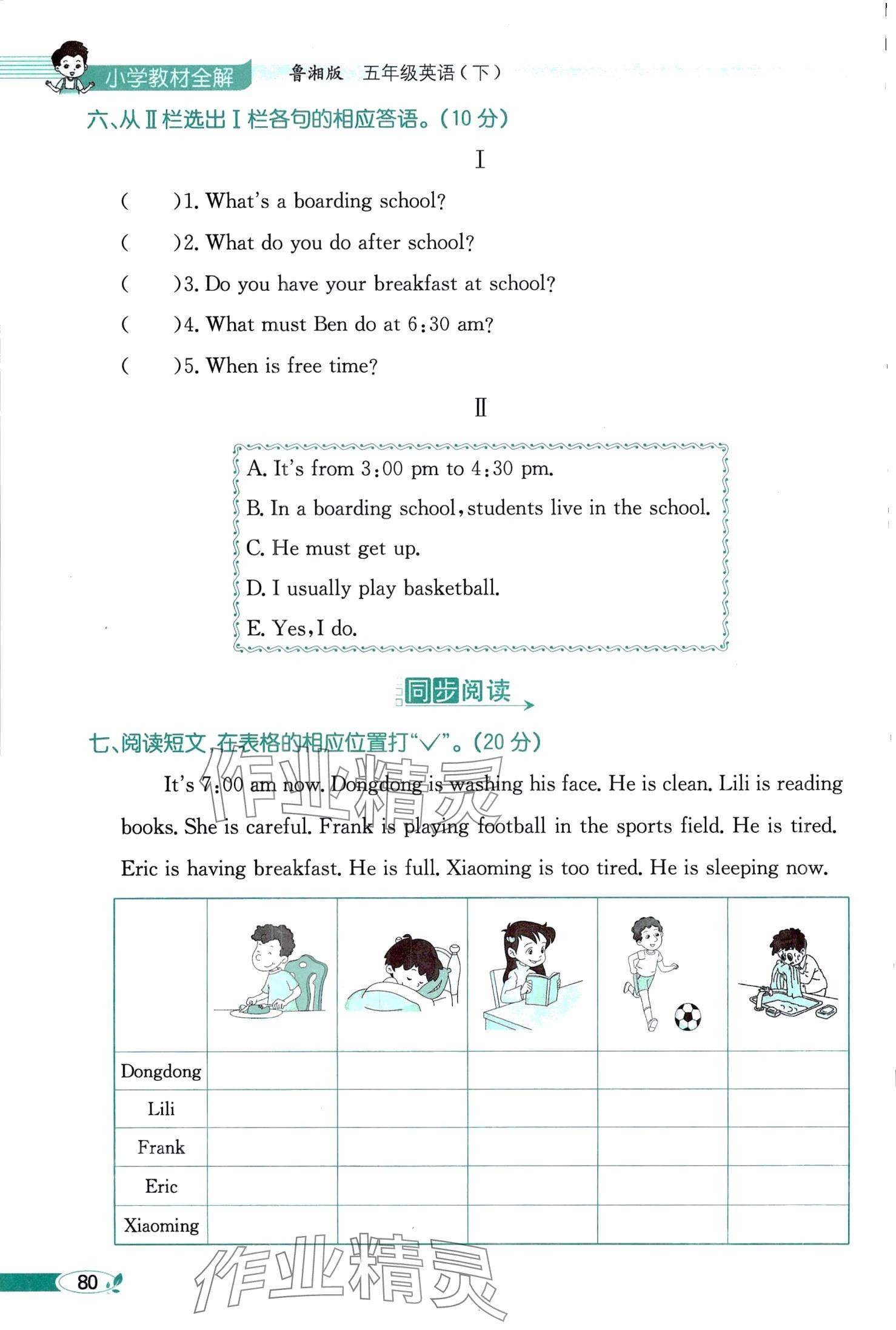 注:目前有些书本章节名称可能整理的还不是很完善,但都是按照顺序排列的,请同学们按照顺序仔细查找。练习册 2024年教材课本五年级英语下册湘鲁教版 答案主要是用来给同学们做完题方便对答案用的,请勿直接抄袭。