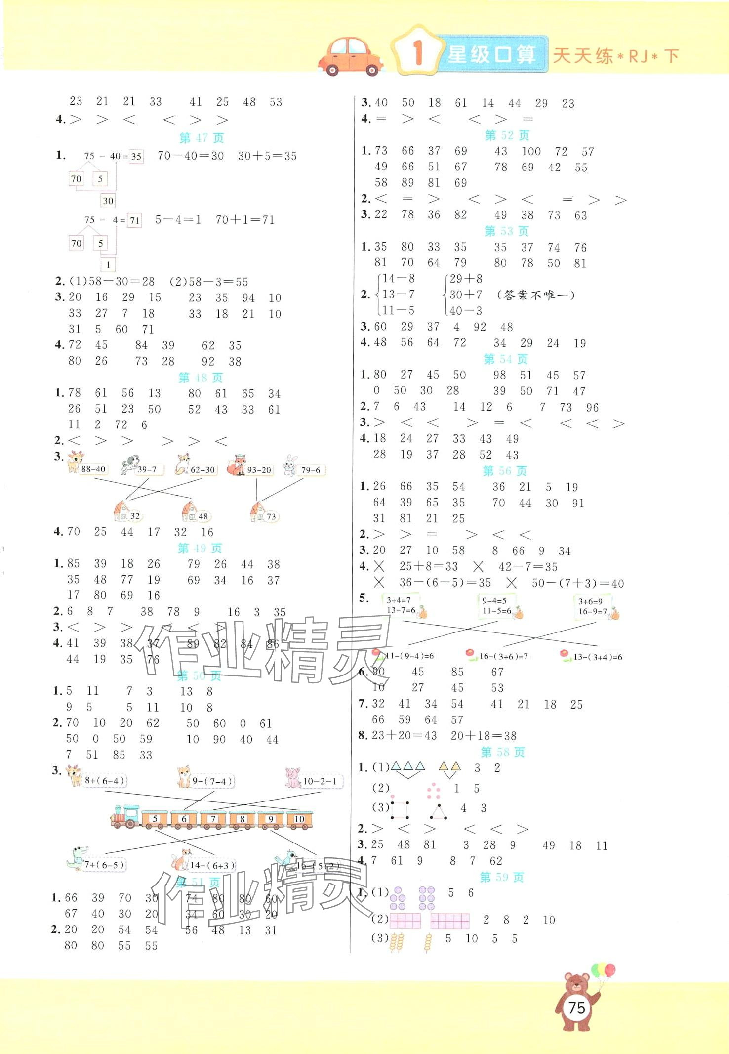 注:目前有些书本章节名称可能整理的还不是很完善,但都是按照顺序排列的,请同学们按照顺序仔细查找。练习册 2024年扬帆文化星级口算天天练一年级数学下册人教版 答案主要是用来给同学们做完题方便对答案用的,请勿直接抄袭。