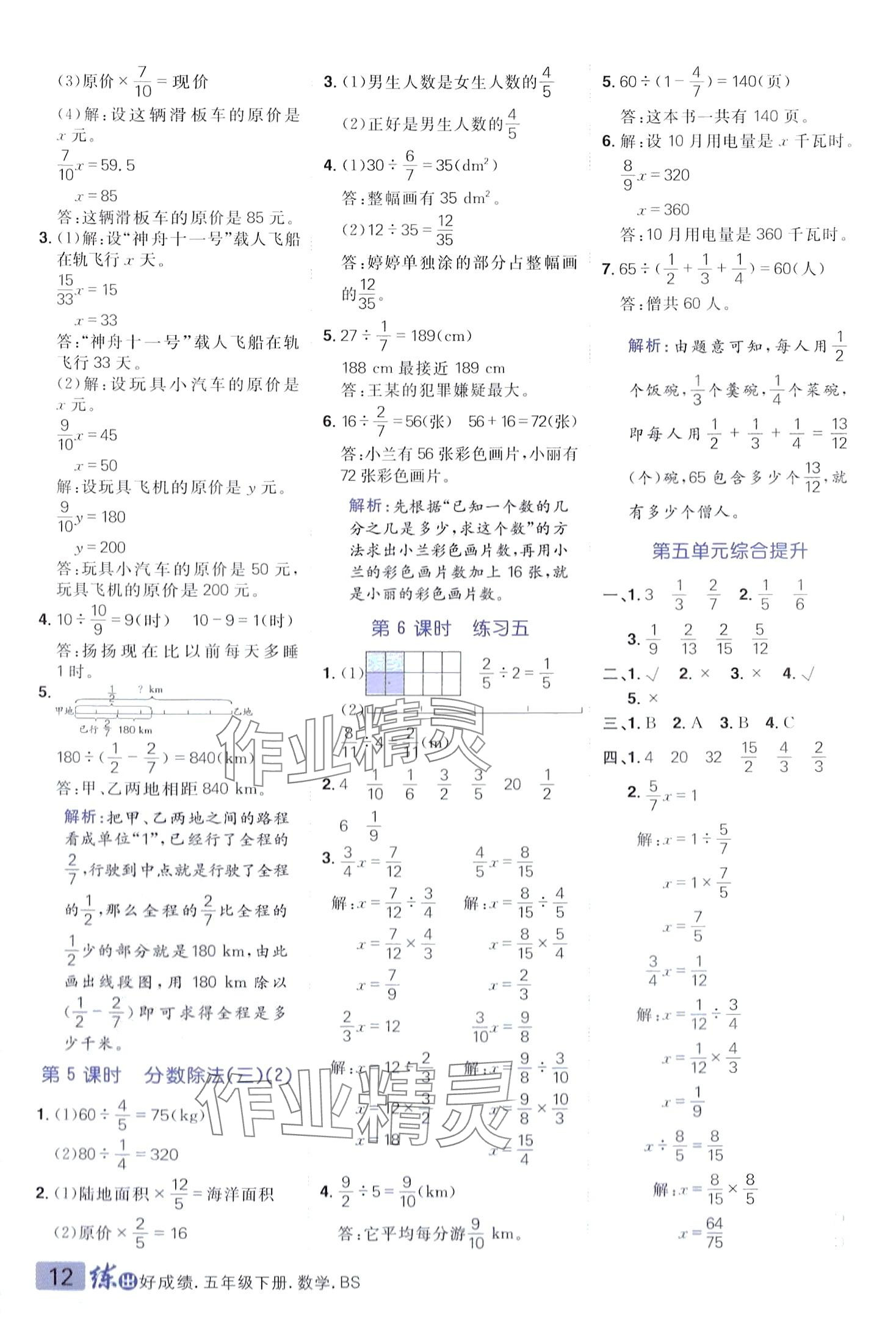 注:目前有些书本章节名称可能整理的还不是很完善,但都是按照顺序排列的,请同学们按照顺序仔细查找。练习册 2024年练出好成绩五年级数学下册北师大版 答案主要是用来给同学们做完题方便对答案用的,请勿直接抄袭。