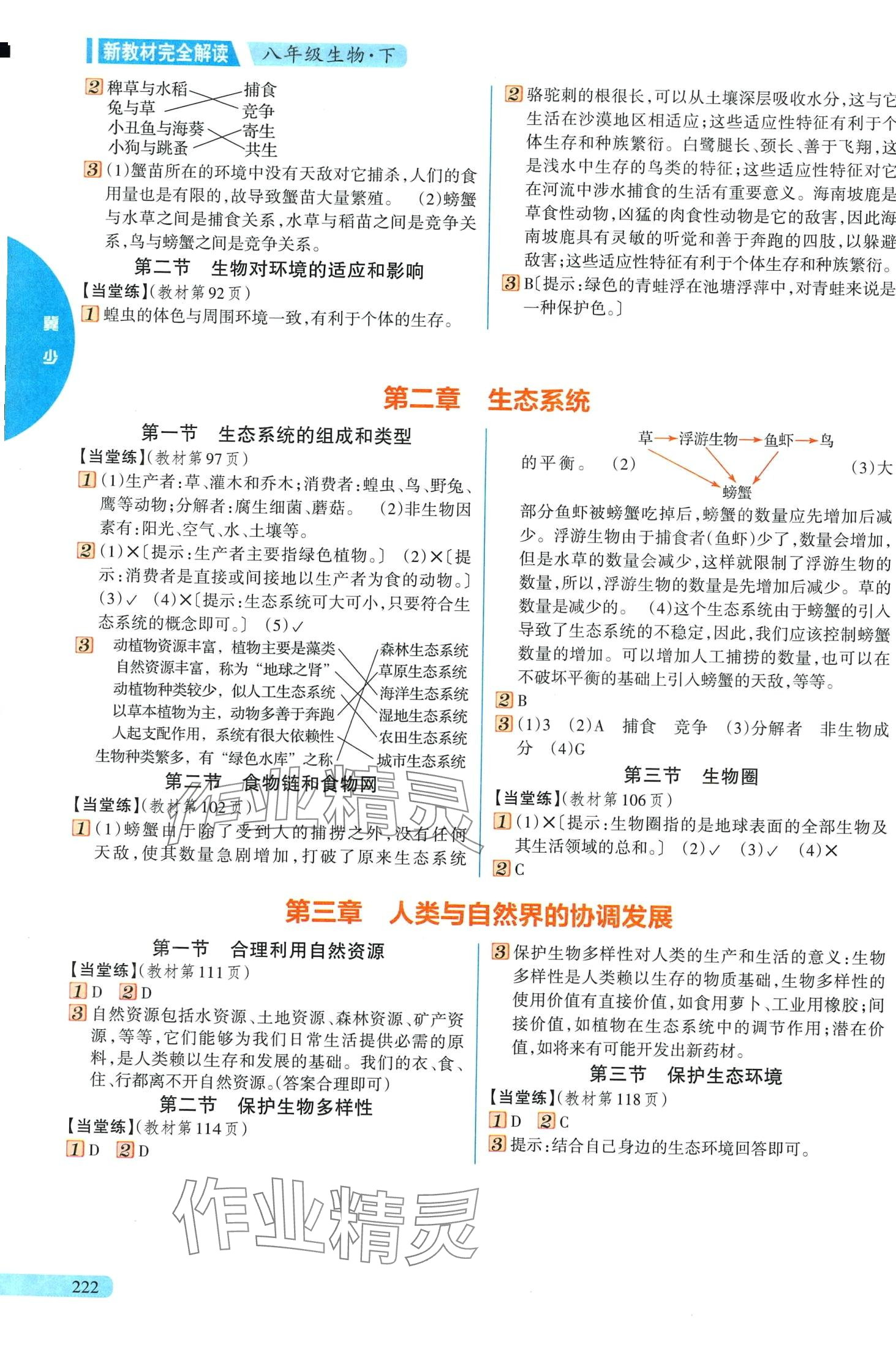 注:目前有些书本章节名称可能整理的还不是很完善,但都是按照顺序排列的,请同学们按照顺序仔细查找。练习册 2024年教材课本八年级生物下册冀少版 答案主要是用来给同学们做完题方便对答案用的,请勿直接抄袭。