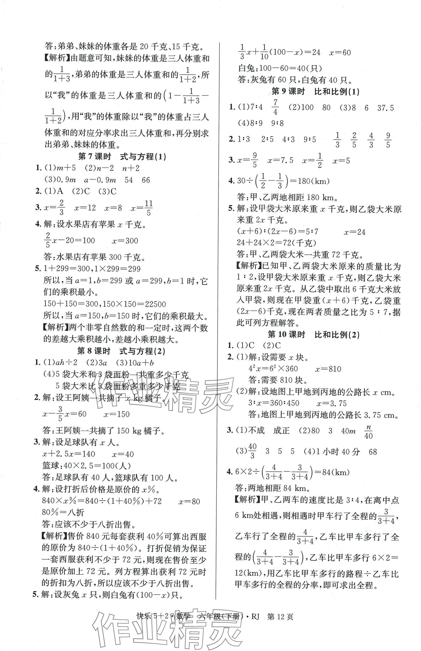注:目前有些书本章节名称可能整理的还不是很完善,但都是按照顺序排列的,请同学们按照顺序仔细查找。练习册 2024年快乐5加2同步训练六年级数学下册人教版 答案主要是用来给同学们做完题方便对答案用的,请勿直接抄袭。
