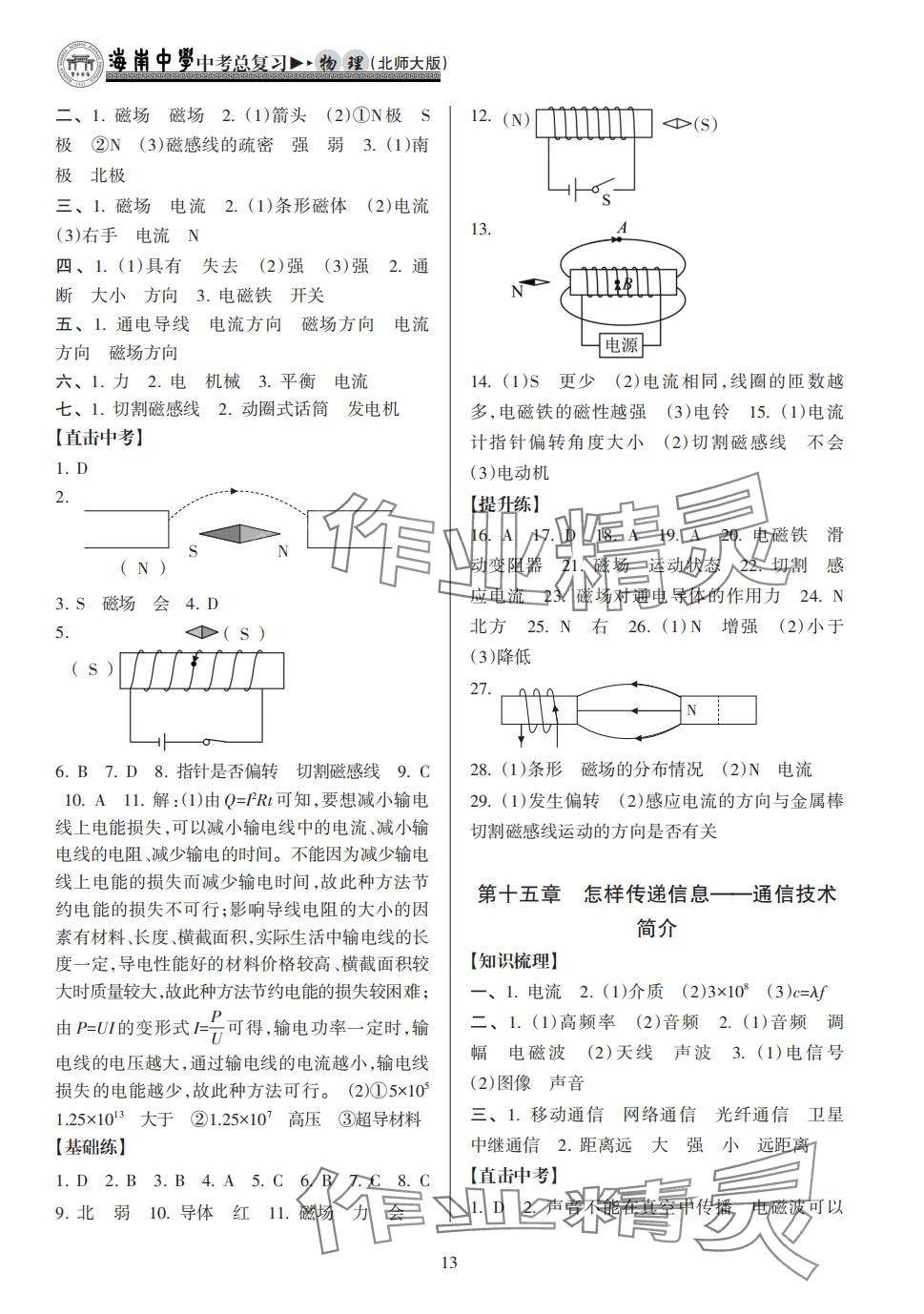 注:目前有些书本章节名称可能整理的还不是很完善,但都是按照顺序排列的,请同学们按照顺序仔细查找。练习册 2024年海南中学中考总复习物理中考北师大版 答案主要是用来给同学们做完题方便对答案用的,请勿直接抄袭。