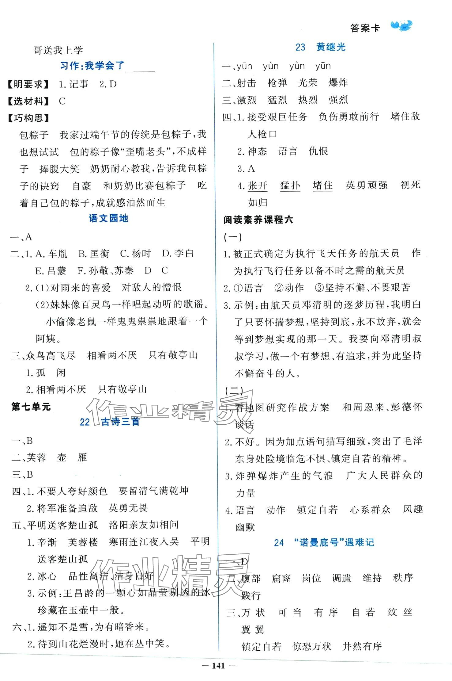 注:目前有些书本章节名称可能整理的还不是很完善,但都是按照顺序排列的,请同学们按照顺序仔细查找。练习册 2024年世纪金榜金榜小博士四年级语文下册人教版 答案主要是用来给同学们做完题方便对答案用的,请勿直接抄袭。