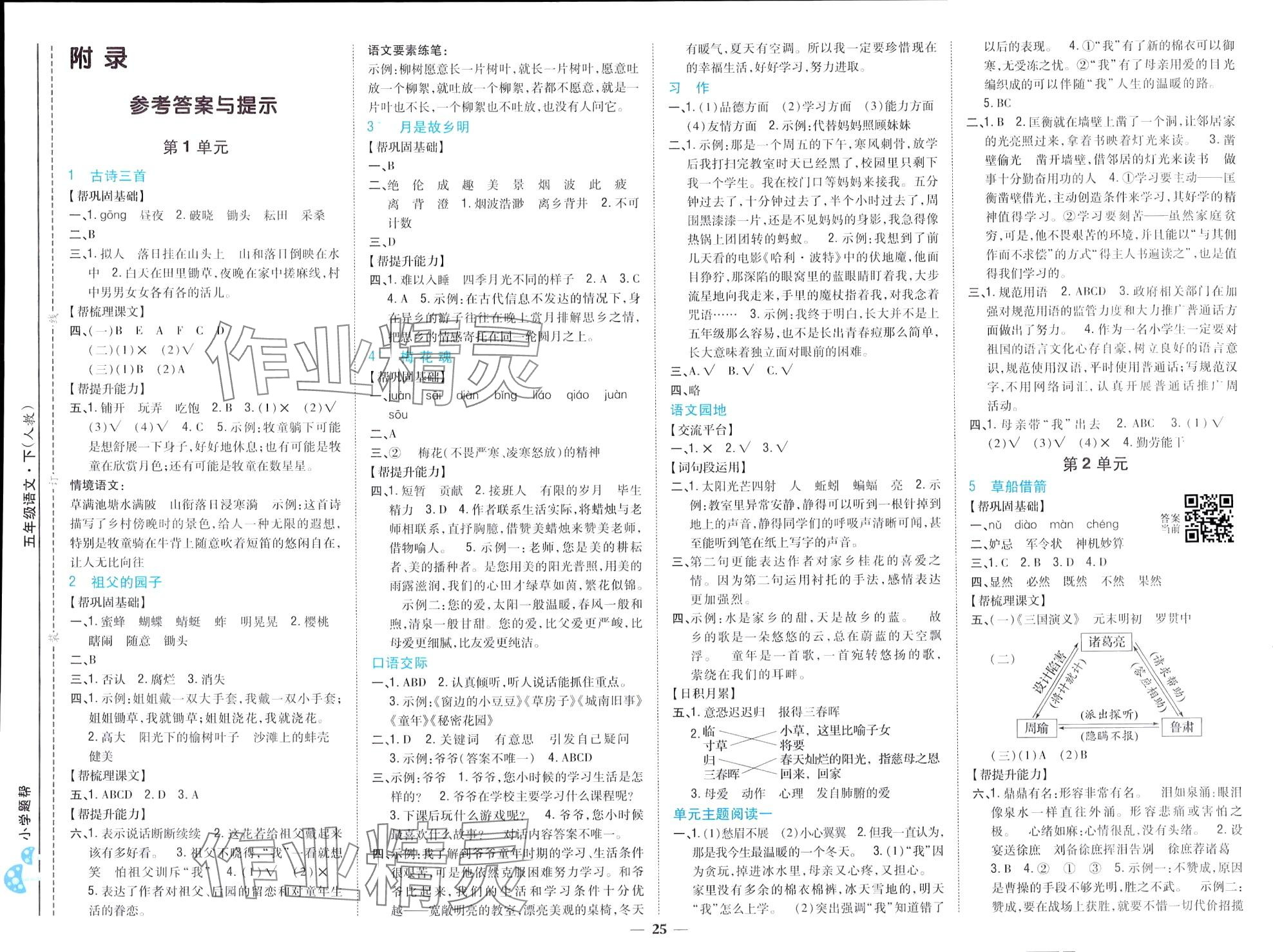 注:目前有些书本章节名称可能整理的还不是很完善,但都是按照顺序排列的,请同学们按照顺序仔细查找。练习册 2024年小学题帮五年级语文下册人教版 答案主要是用来给同学们做完题方便对答案用的,请勿直接抄袭。