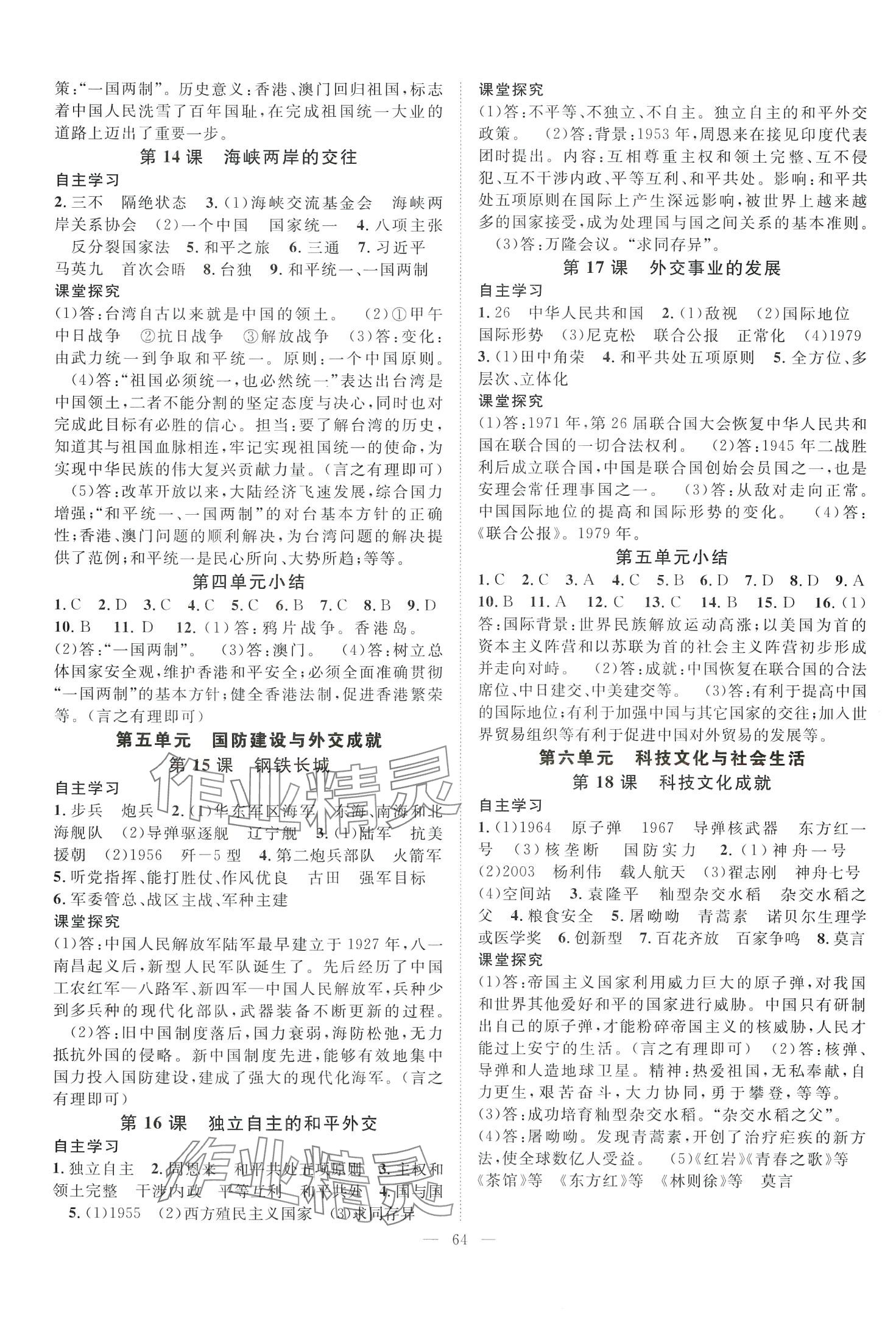 注:目前有些书本章节名称可能整理的还不是很完善,但都是按照顺序排列的,请同学们按照顺序仔细查找。练习册 2024年优质课堂导学案八年级历史下册人教版 答案主要是用来给同学们做完题方便对答案用的,请勿直接抄袭。