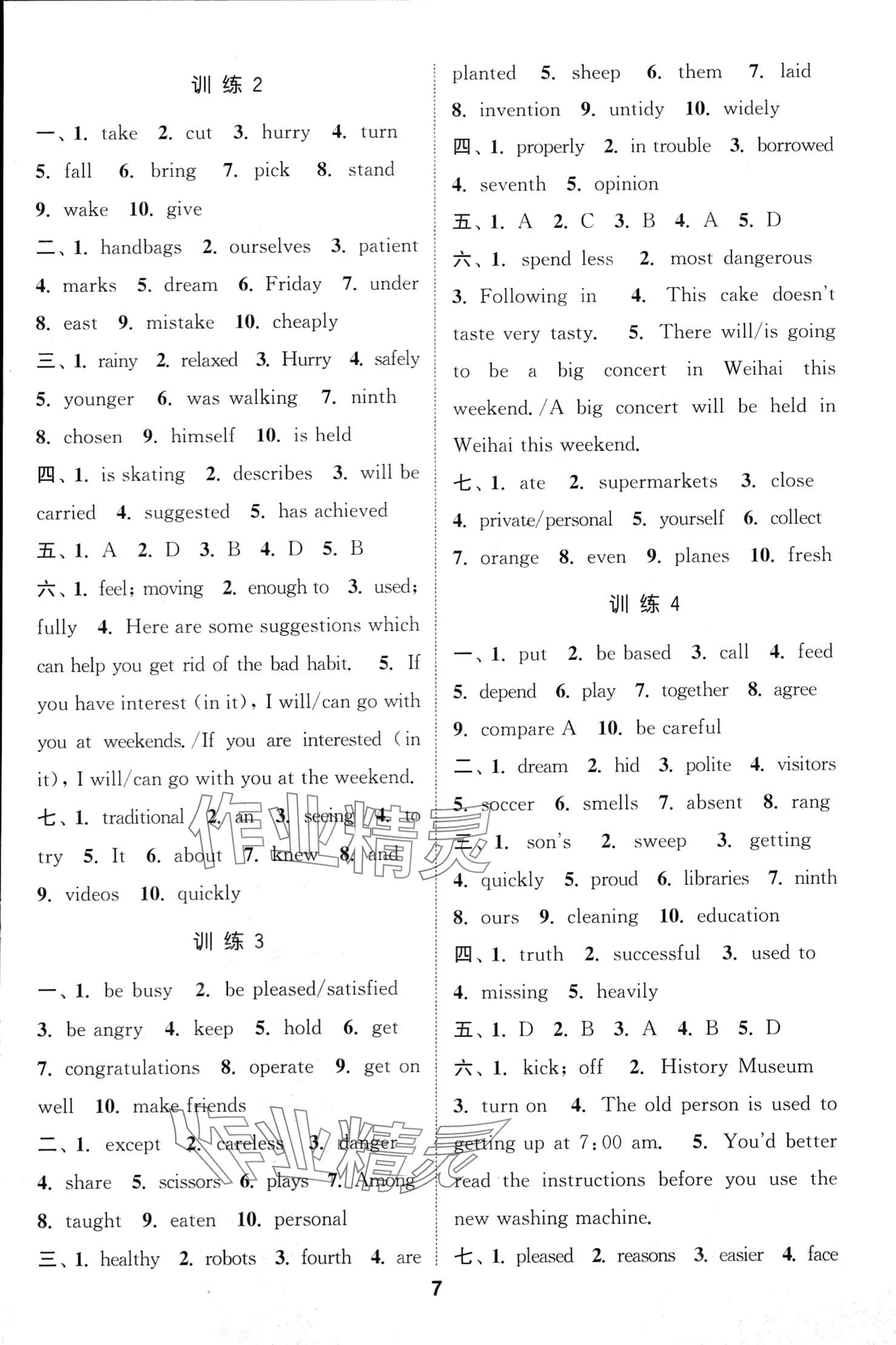 相关练习册答案