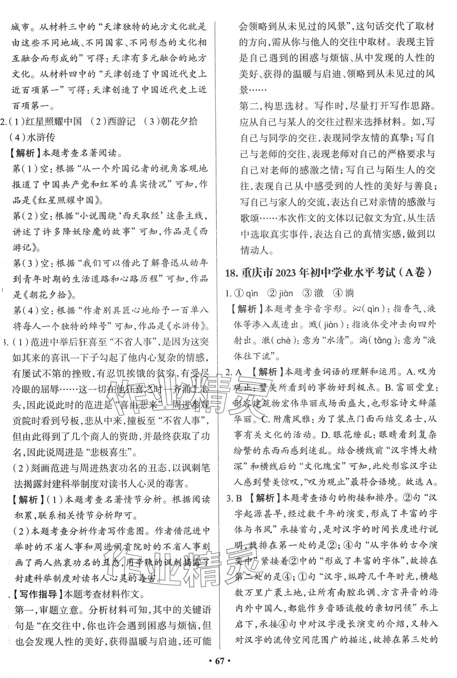 注:目前有些书本章节名称可能整理的还不是很完善,但都是按照顺序排列的,请同学们按照顺序仔细查找。练习册 2024年中考必刷卷吉林人民出版社语文 答案主要是用来给同学们做完题方便对答案用的,请勿直接抄袭。