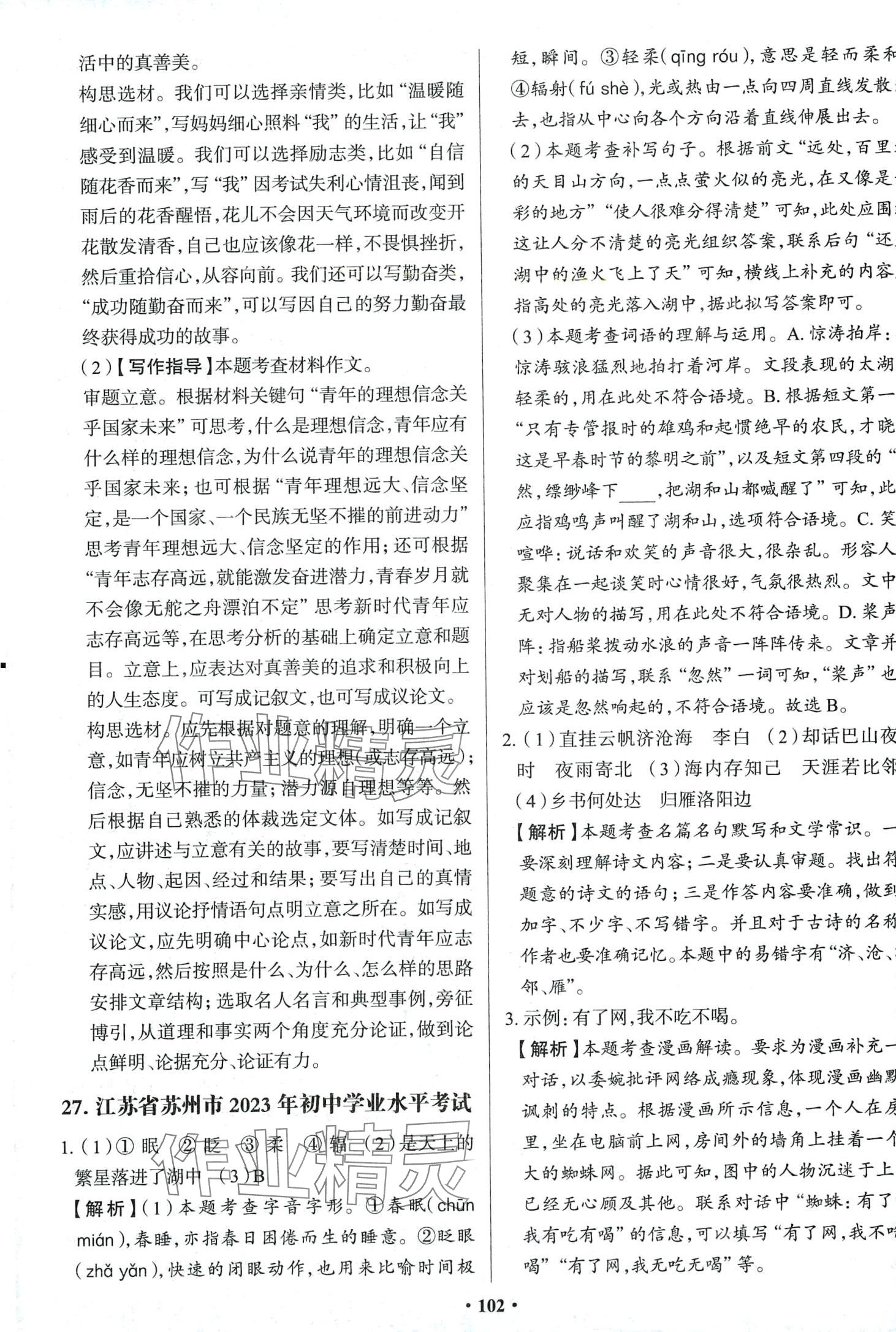 注:目前有些书本章节名称可能整理的还不是很完善,但都是按照顺序排列的,请同学们按照顺序仔细查找。练习册 2024年中考必刷卷吉林人民出版社语文 答案主要是用来给同学们做完题方便对答案用的,请勿直接抄袭。