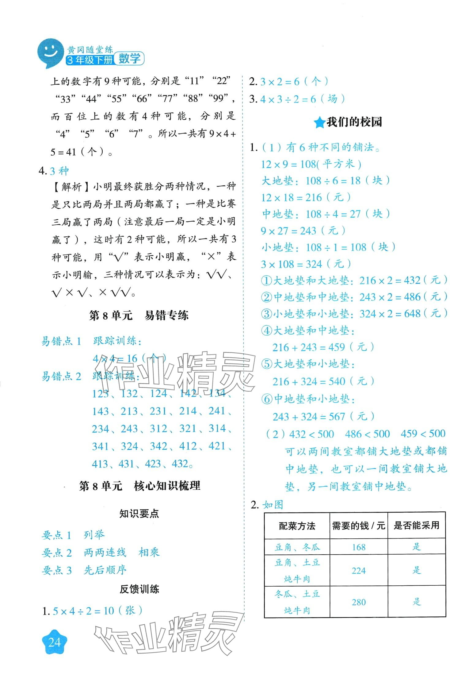 注:目前有些书本章节名称可能整理的还不是很完善,但都是按照顺序排列的,请同学们按照顺序仔细查找。练习册 2024年黄冈随堂练三年级数学下册人教版 答案主要是用来给同学们做完题方便对答案用的,请勿直接抄袭。