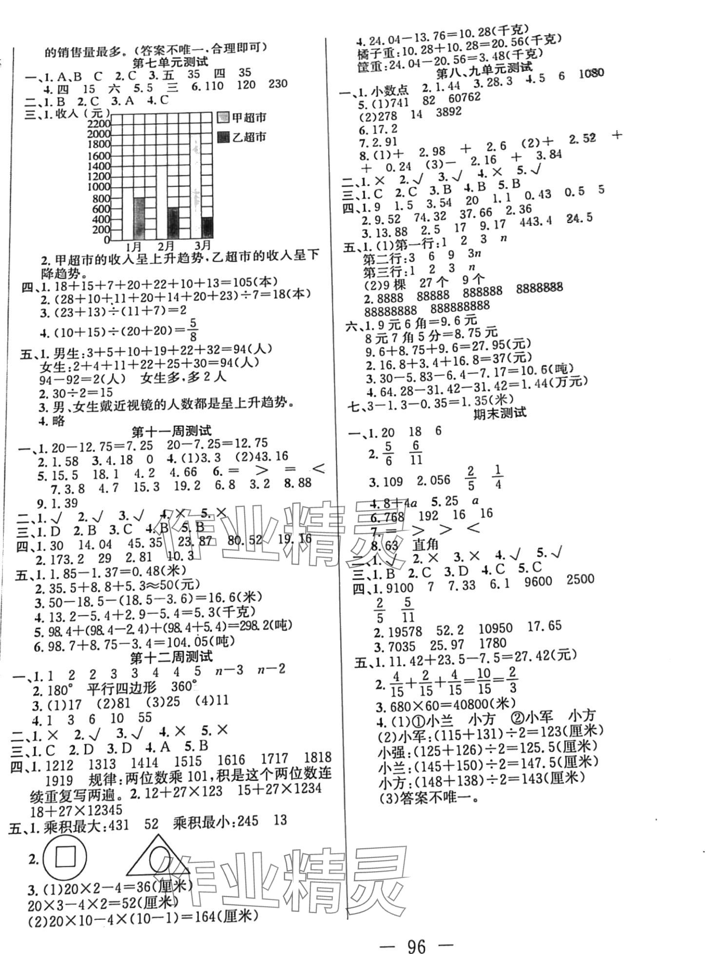 《2024年金典测试卷新疆文化出版社四年级数学下册冀教版》