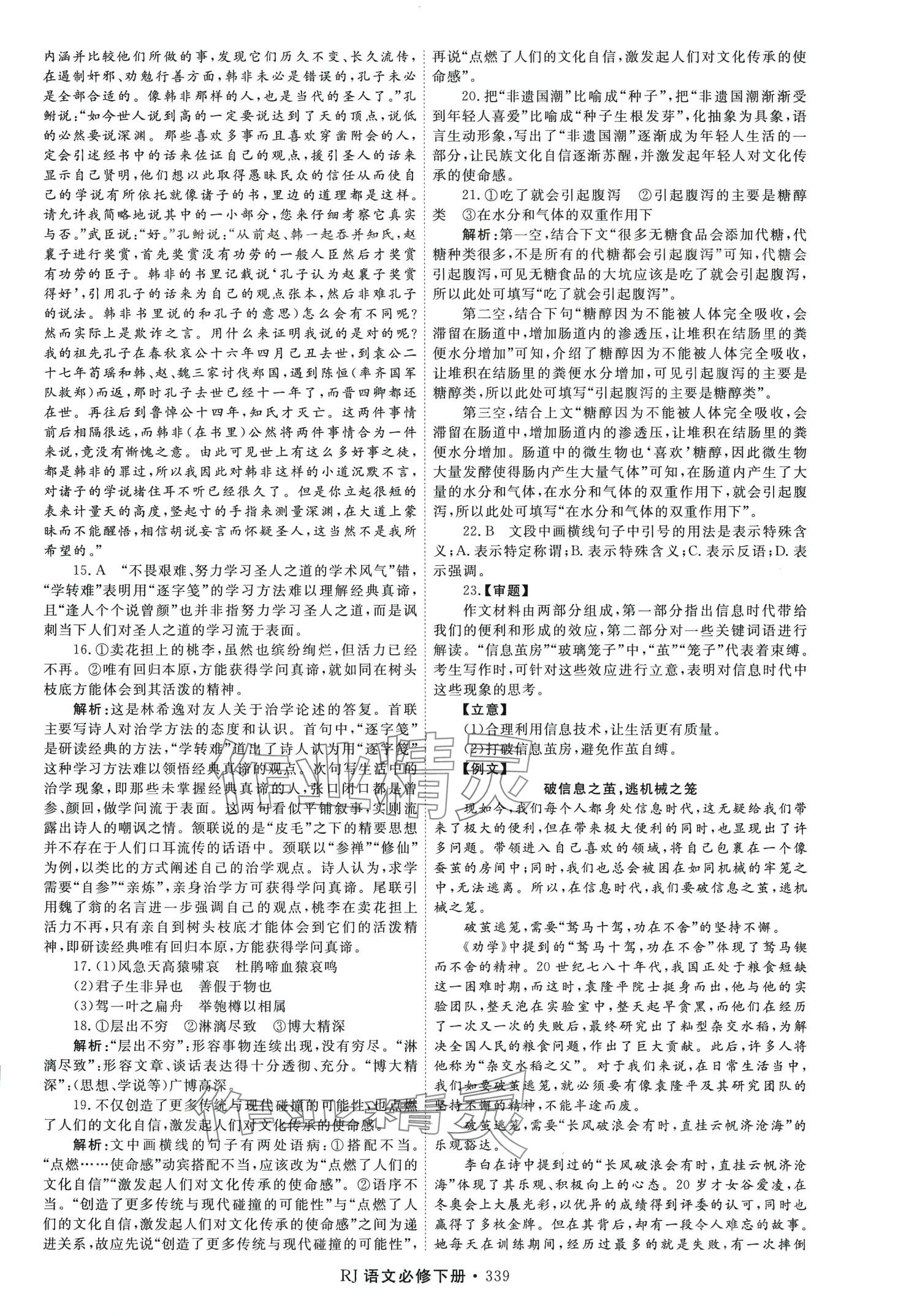 注:目前有些书本章节名称可能整理的还不是很完善,但都是按照顺序排列的,请同学们按照顺序仔细查找。练习册 2024年同步导练高中语文必修下册人教版 答案主要是用来给同学们做完题方便对答案用的,请勿直接抄袭。