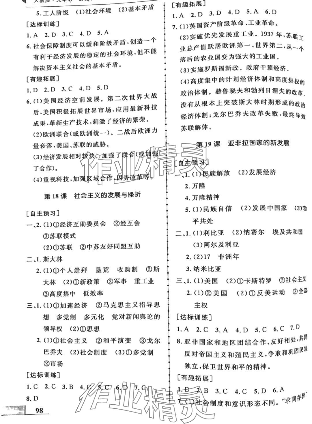 注:目前有些书本章节名称可能整理的还不是很完善,但都是按照顺序排列的,请同学们按照顺序仔细查找。练习册 2024年名师点拨配套练习课时作业九年级历史下册人教版 答案主要是用来给同学们做完题方便对答案用的,请勿直接抄袭。