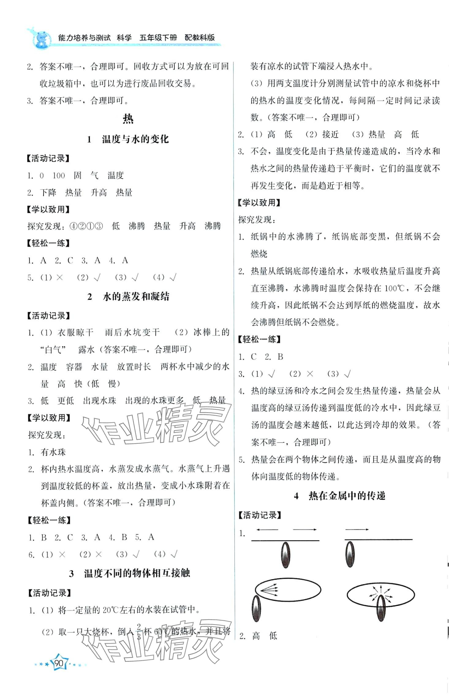 注:目前有些书本章节名称可能整理的还不是很完善,但都是按照顺序排列的,请同学们按照顺序仔细查找。练习册 2024年能力培养与测试五年级科学下册教科版 答案主要是用来给同学们做完题方便对答案用的,请勿直接抄袭。