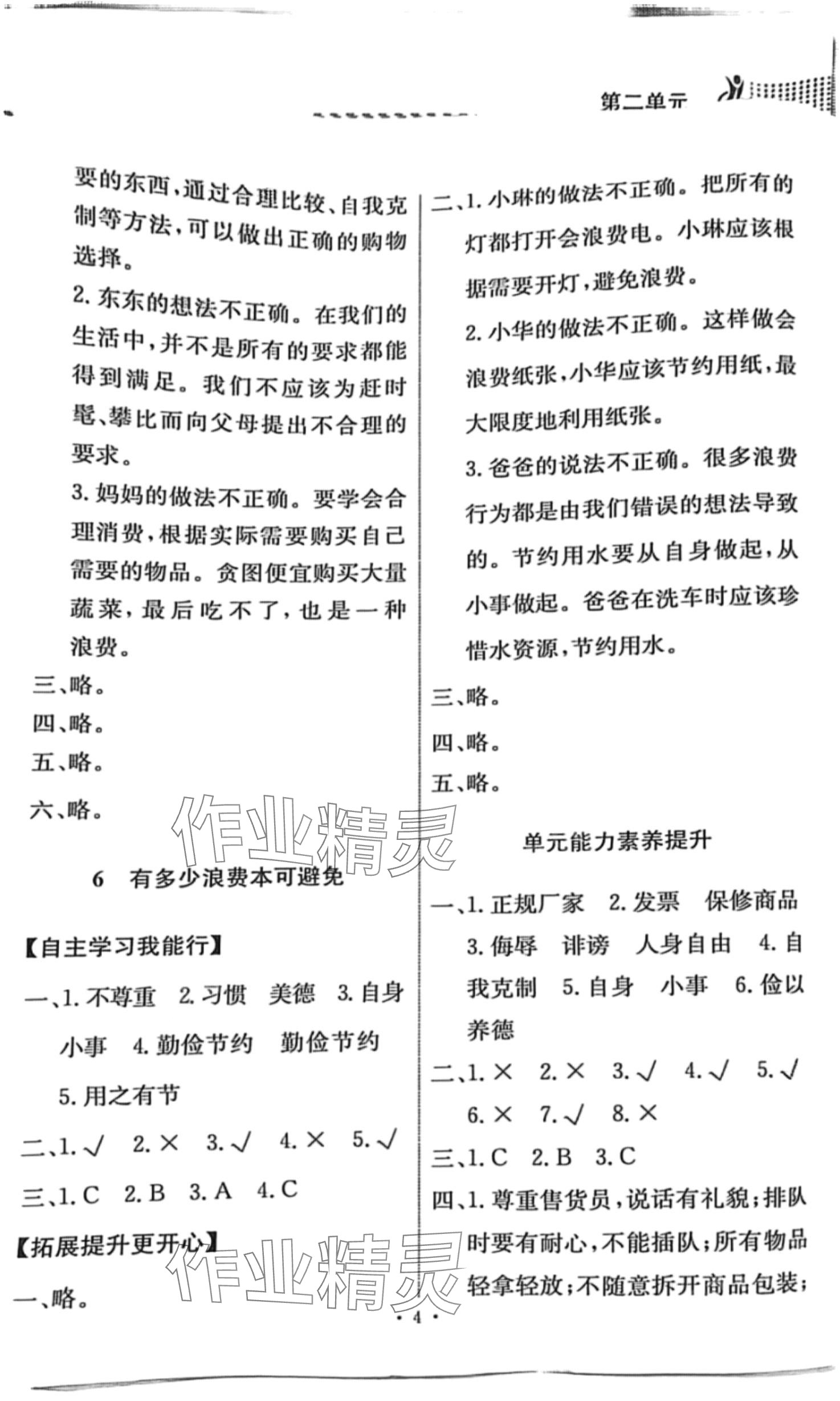注:目前有些书本章节名称可能整理的还不是很完善,但都是按照顺序排列的,请同学们按照顺序仔细查找。练习册 2024年能力培养与测试四年级道德与法治下册人教版 答案主要是用来给同学们做完题方便对答案用的,请勿直接抄袭。
