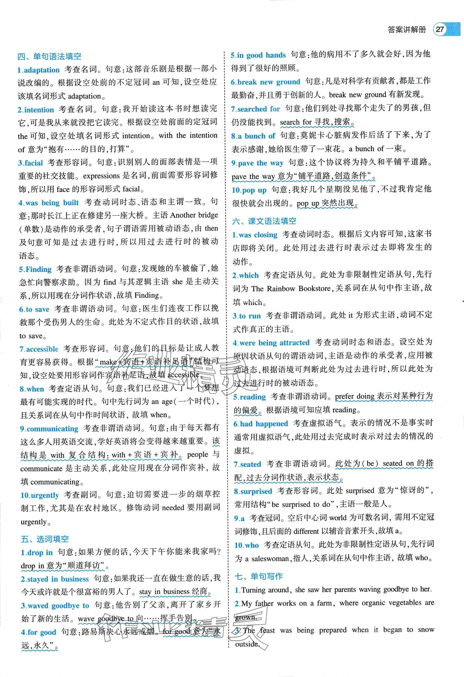 注:目前有些书本章节名称可能整理的还不是很完善,但都是按照顺序排列的,请同学们按照顺序仔细查找。练习册 2024年53全优卷高中英语选择性必修第二册外研版 答案主要是用来给同学们做完题方便对答案用的,请勿直接抄袭。
