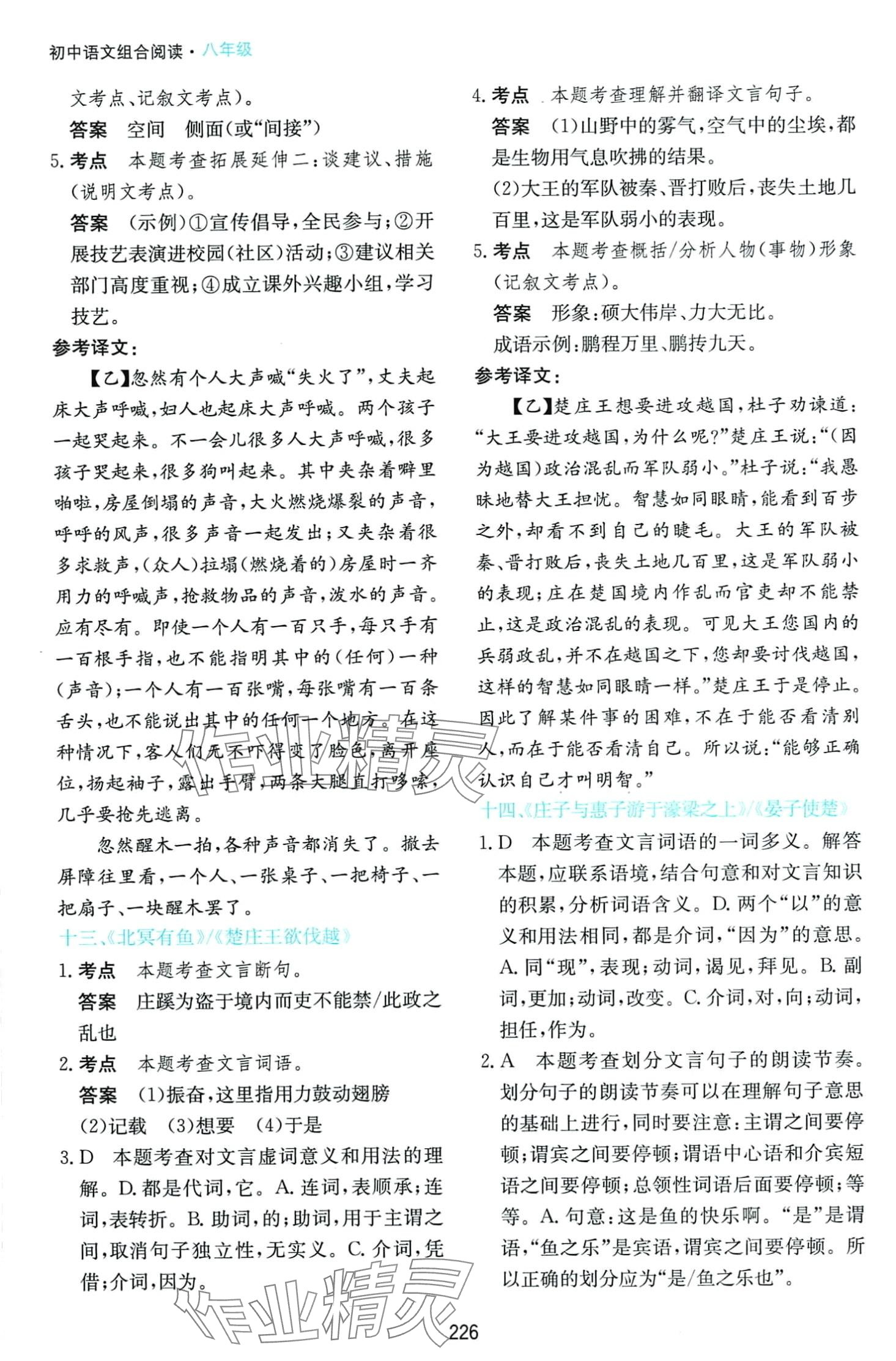 注:目前有些书本章节名称可能整理的还不是很完善,但都是按照顺序排列的,请同学们按照顺序仔细查找。练习册 2024年赞读语文组合阅读八年级 答案主要是用来给同学们做完题方便对答案用的,请勿直接抄袭。