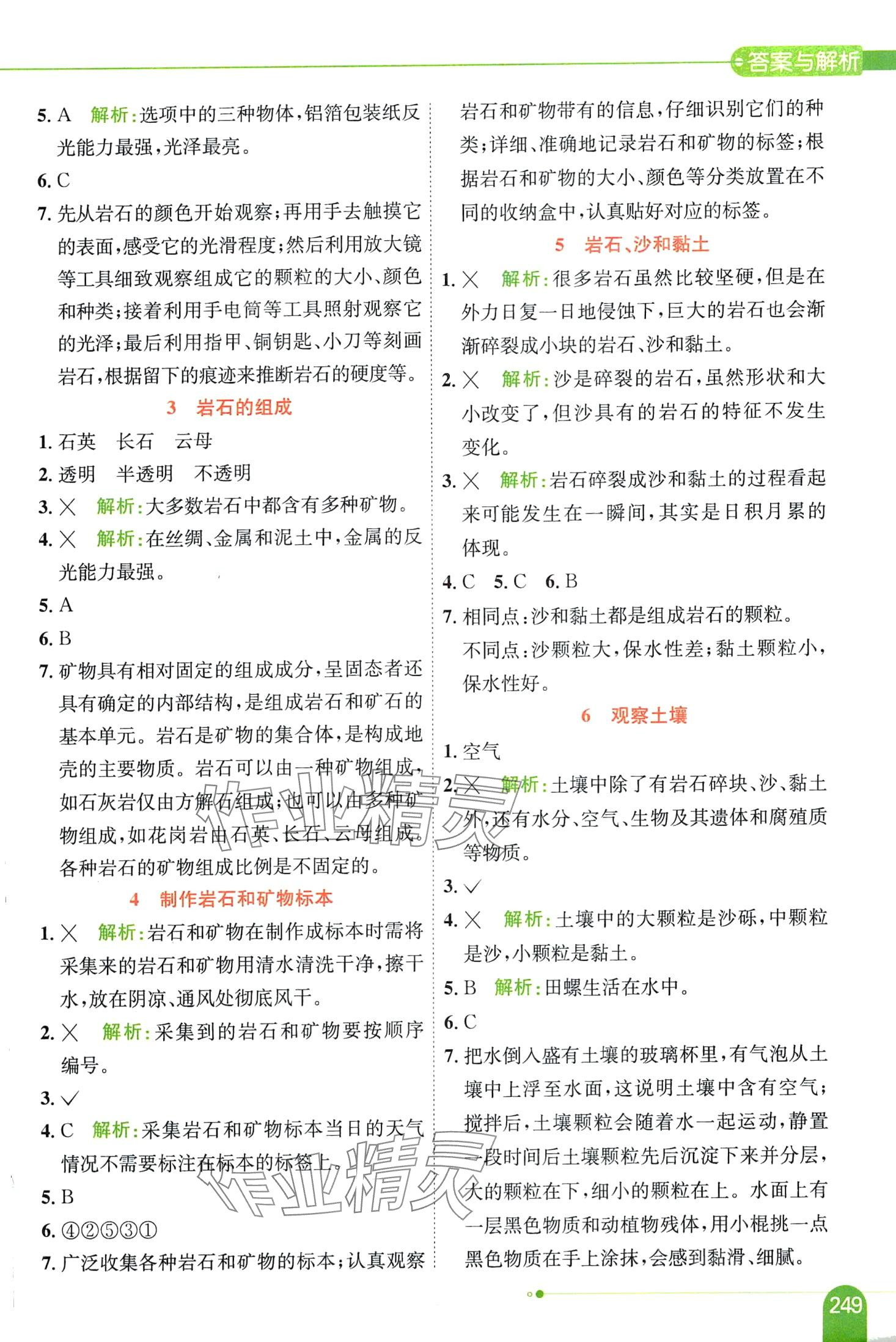 注:目前有些书本章节名称可能整理的还不是很完善,但都是按照顺序排列的,请同学们按照顺序仔细查找。练习册 2024年教材全解四年级科学下册教科版 答案主要是用来给同学们做完题方便对答案用的,请勿直接抄袭。