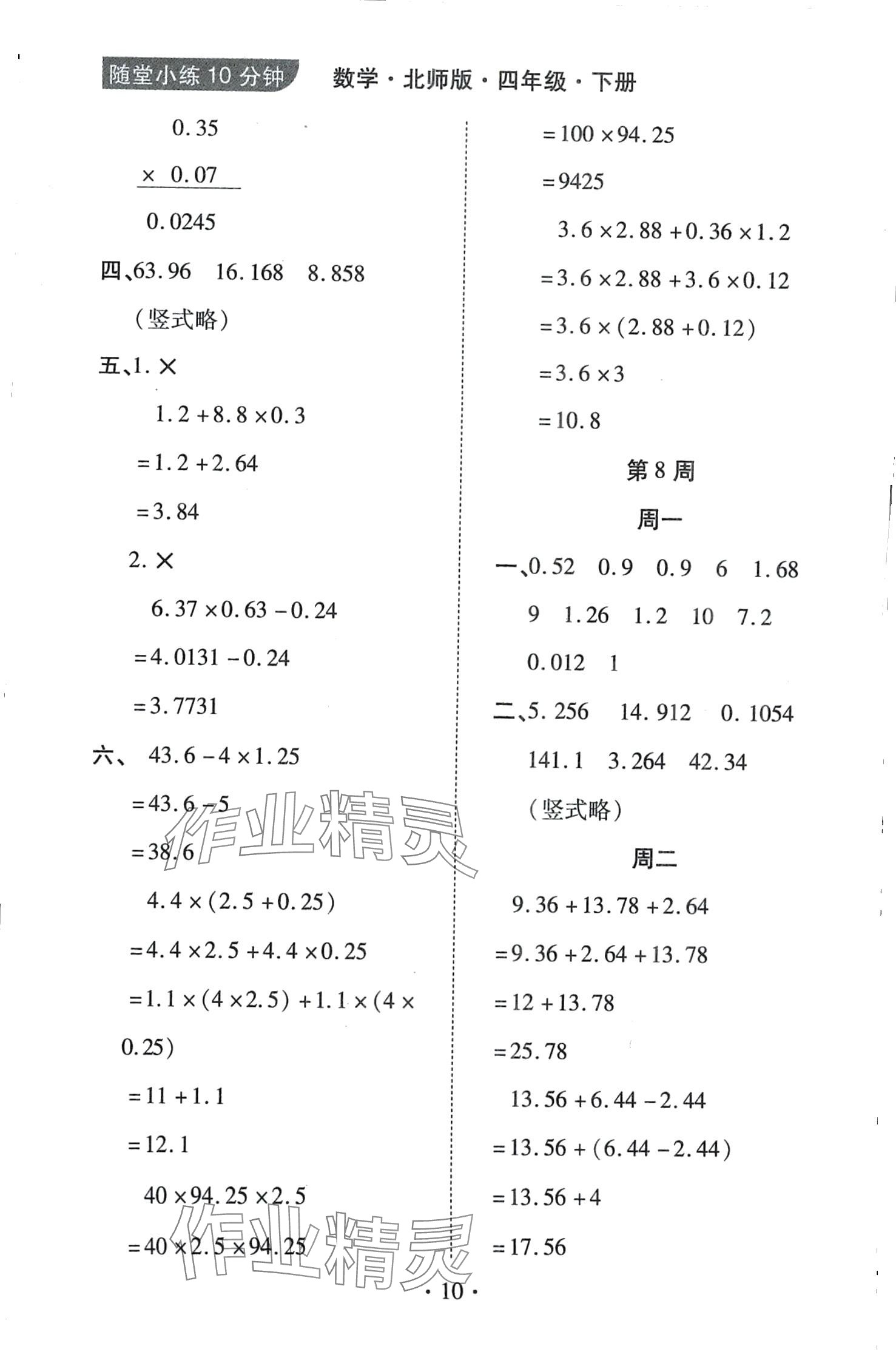 2024年千里马随堂小练10分钟四年级数学下册北师大版