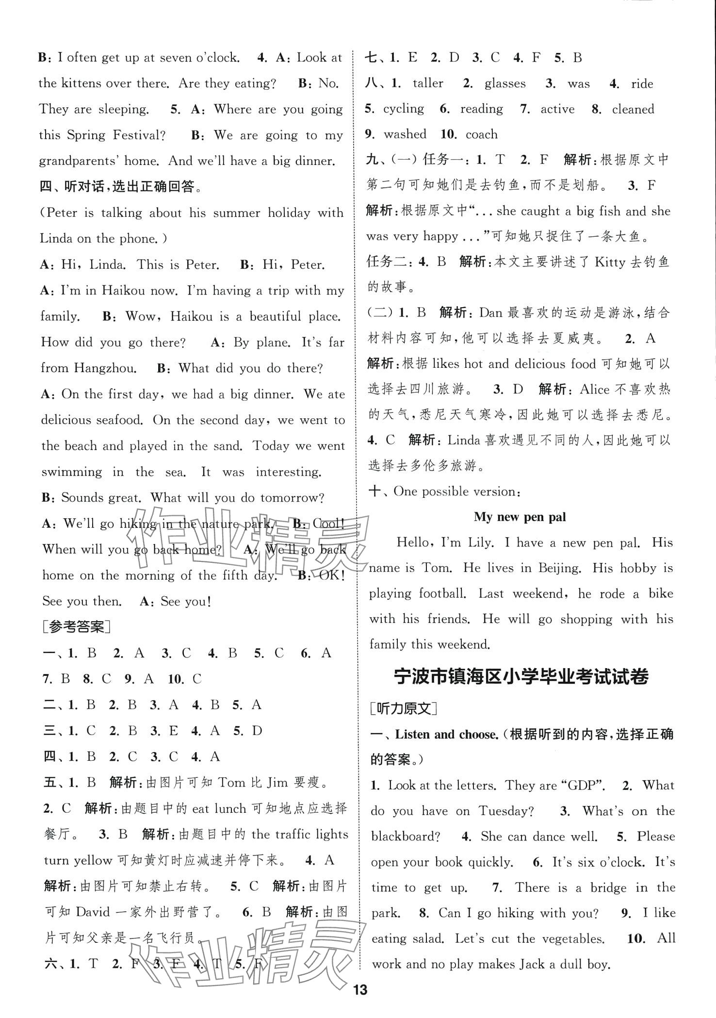 注:目前有些书本章节名称可能整理的还不是很完善,但都是按照顺序排列的,请同学们按照顺序仔细查找。练习册 2024年通城学典卷典六年级英语下册人教版 答案主要是用来给同学们做完题方便对答案用的,请勿直接抄袭。