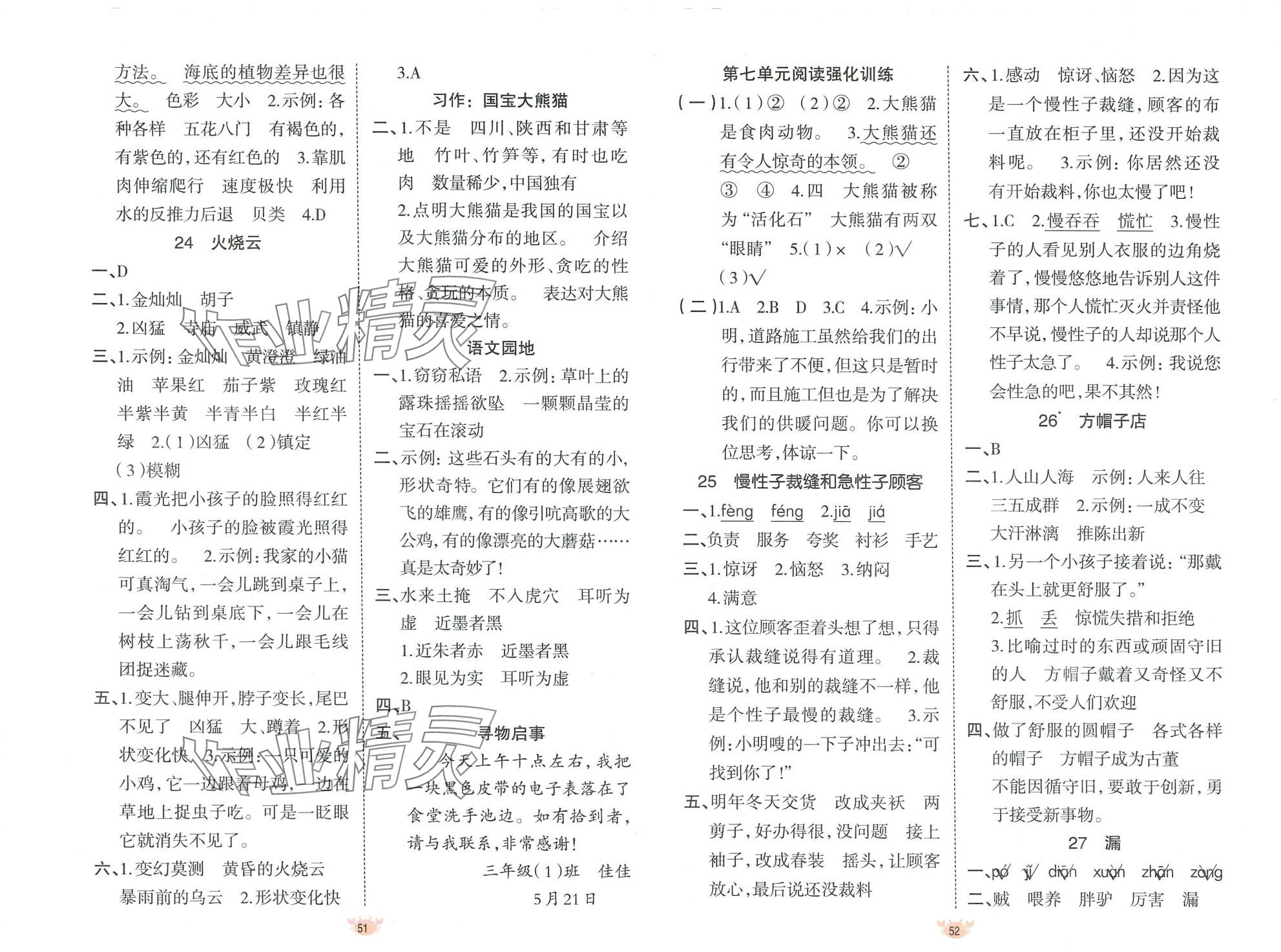 注:目前有些书本章节名称可能整理的还不是很完善,但都是按照顺序排列的,请同学们按照顺序仔细查找。练习册 2024年原创新课堂三年级语文下册人教版 答案主要是用来给同学们做完题方便对答案用的,请勿直接抄袭。