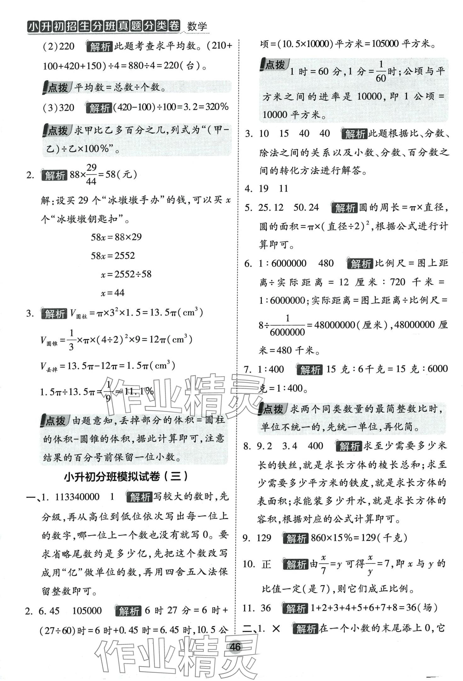 注:目前有些书本章节名称可能整理的还不是很完善,但都是按照顺序排列的,请同学们按照顺序仔细查找。练习册 2024年招生分班真题分类卷六年级数学 答案主要是用来给同学们做完题方便对答案用的,请勿直接抄袭。