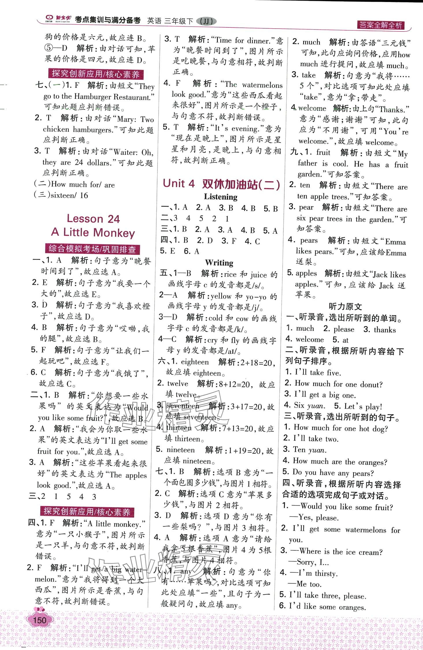注:目前有些书本章节名称可能整理的还不是很完善,但都是按照顺序排列的,请同学们按照顺序仔细查找。练习册 2024年考点集训与满分备考三年级英语下册冀教版 答案主要是用来给同学们做完题方便对答案用的,请勿直接抄袭。