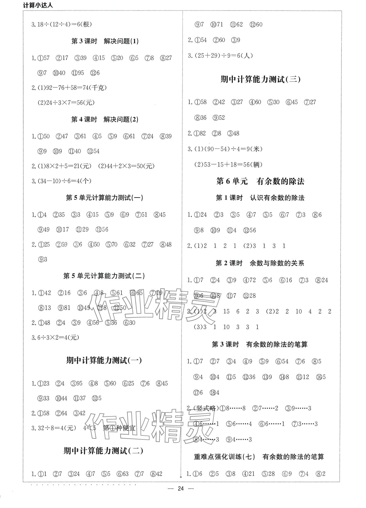 注:目前有些书本章节名称可能整理的还不是很完善,但都是按照顺序排列的,请同学们按照顺序仔细查找。练习册 2024年本真图书计算小达人二年级数学下册人教版 答案主要是用来给同学们做完题方便对答案用的,请勿直接抄袭。