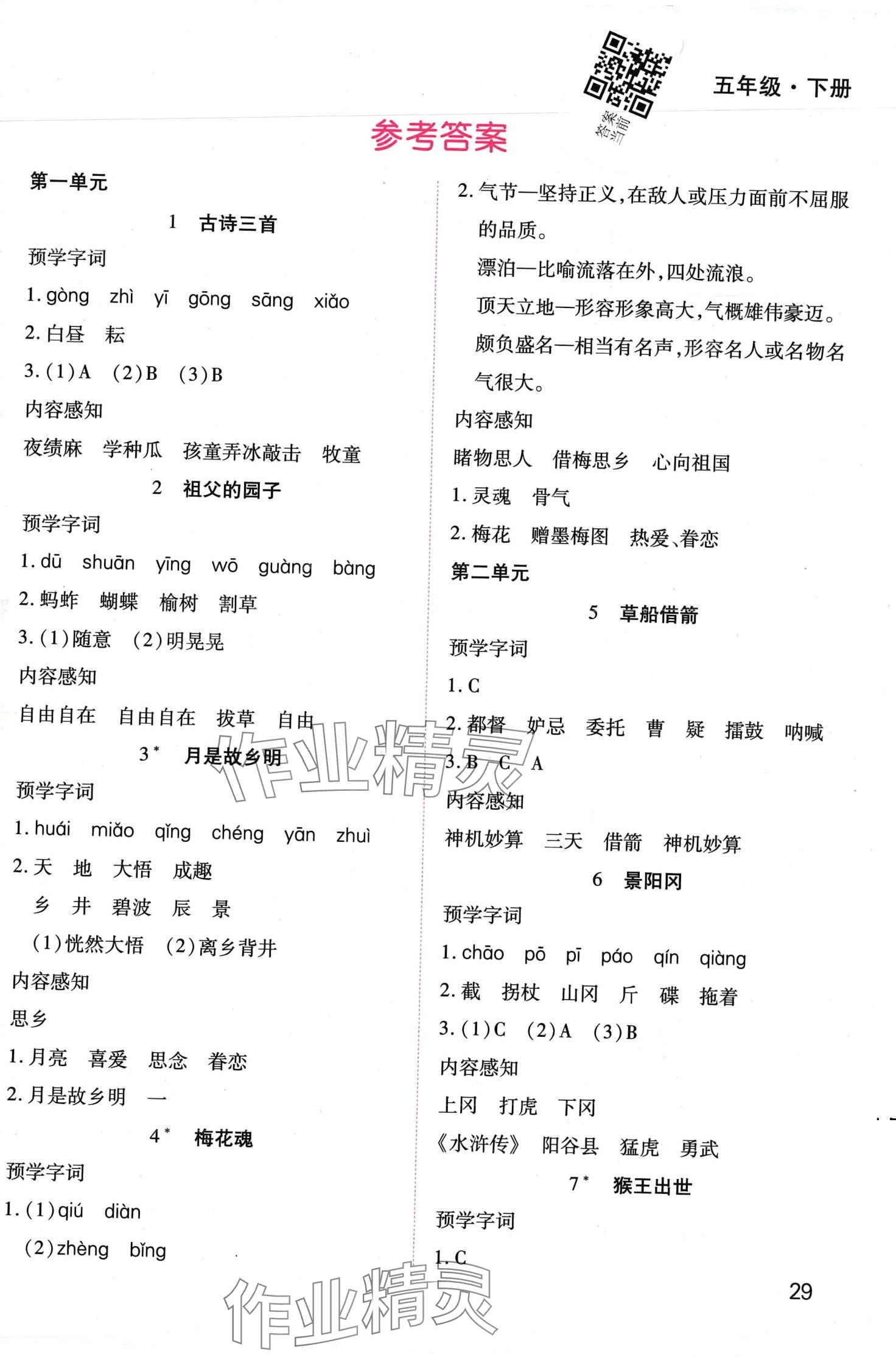 注:目前有些书本章节名称可能整理的还不是很完善,但都是按照顺序排列的,请同学们按照顺序仔细查找。练习册 2024年培优三好生五年级语文下册人教版福建专版 答案主要是用来给同学们做完题方便对答案用的,请勿直接抄袭。