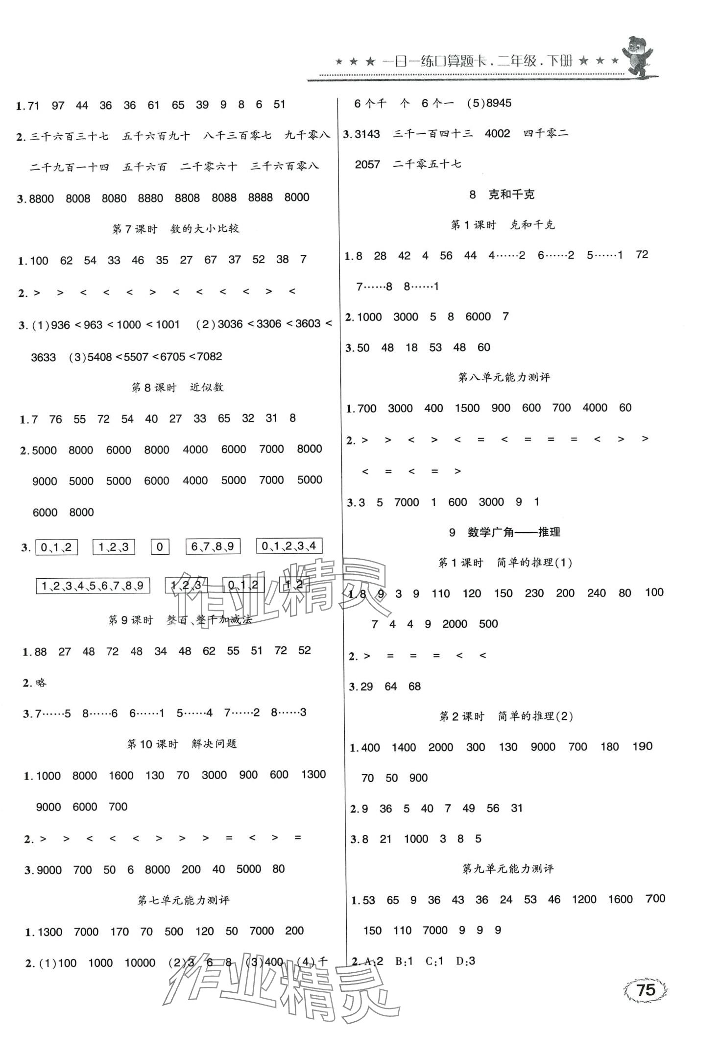注:目前有些书本章节名称可能整理的还不是很完善,但都是按照顺序排列的,请同学们按照顺序仔细查找。练习册 2024年1日1练口算题卡二年级数学下册人教版 答案主要是用来给同学们做完题方便对答案用的,请勿直接抄袭。