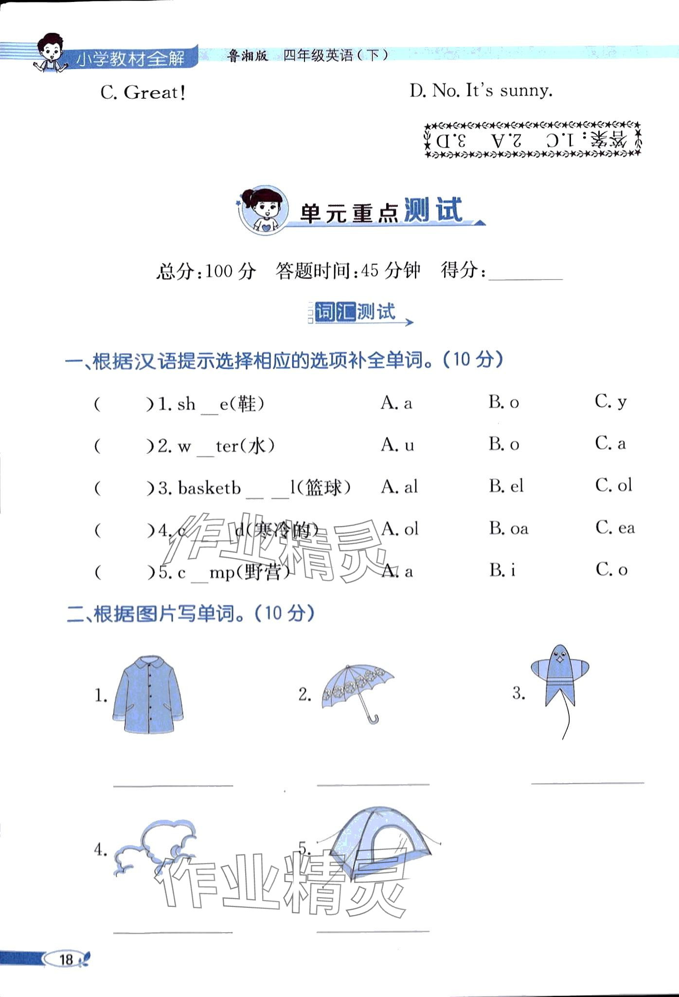 注:目前有些书本章节名称可能整理的还不是很完善,但都是按照顺序排列的,请同学们按照顺序仔细查找。练习册2024年教材课本四年级英语下册湘鲁教版答案主要是用来给同学们做完题方便对答案用的,请勿直接抄袭。