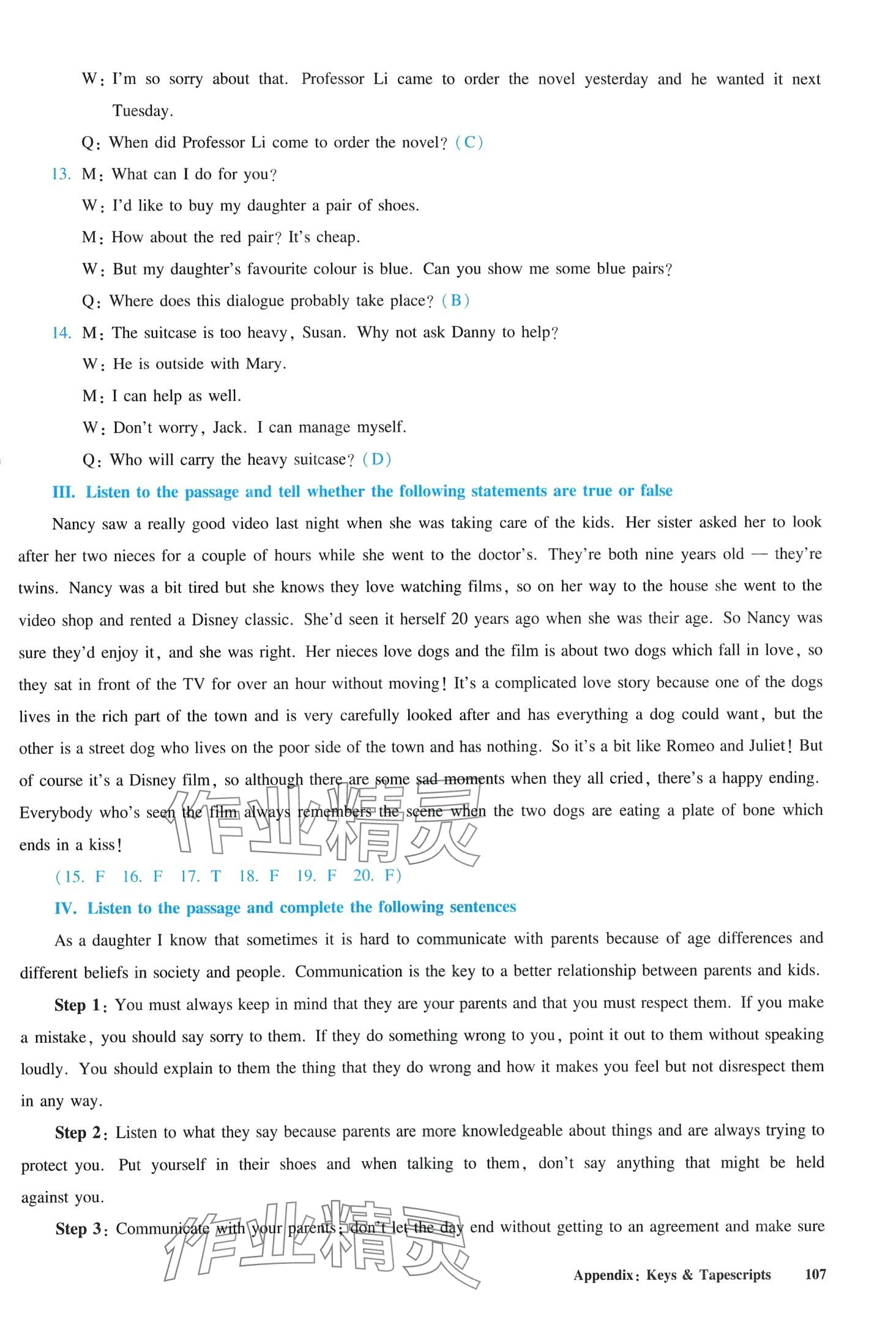 注:目前有些书本章节名称可能整理的还不是很完善,但都是按照顺序排列的,请同学们按照顺序仔细查找。练习册 2024年全新英语听力八年级全一册人教版提高版 答案主要是用来给同学们做完题方便对答案用的,请勿直接抄袭。
