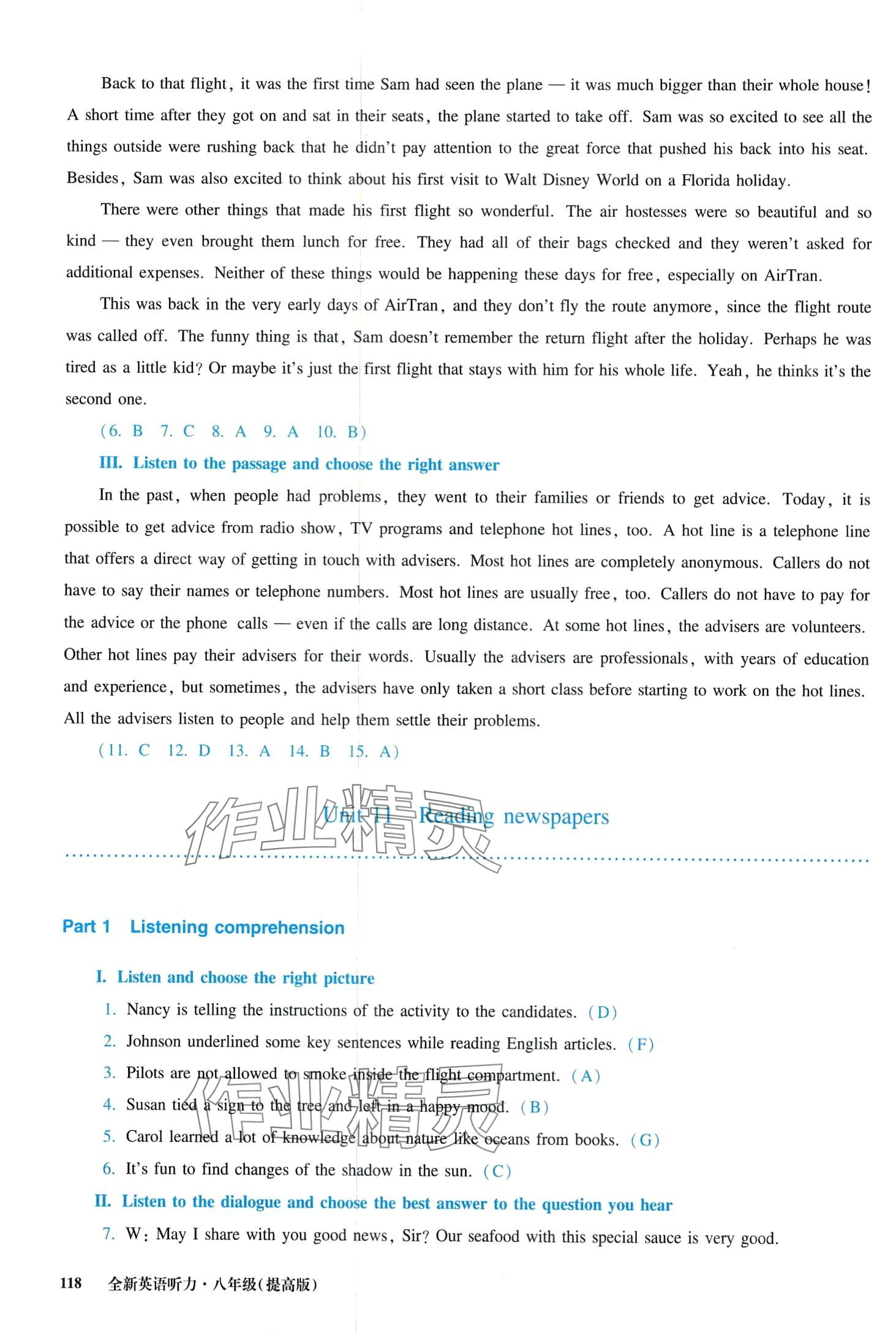 注:目前有些书本章节名称可能整理的还不是很完善,但都是按照顺序排列的,请同学们按照顺序仔细查找。练习册 2024年全新英语听力八年级全一册人教版提高版 答案主要是用来给同学们做完题方便对答案用的,请勿直接抄袭。