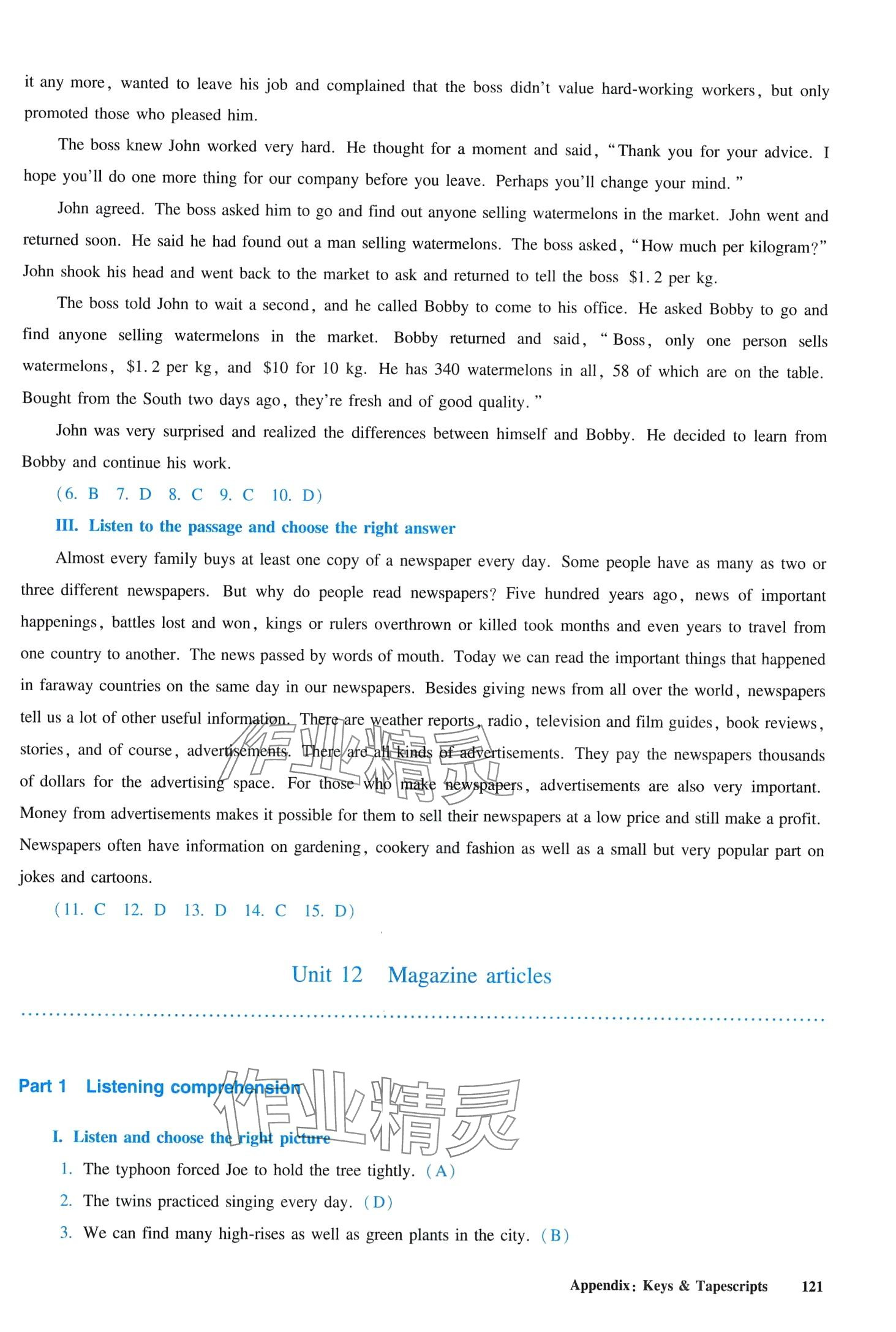 注:目前有些书本章节名称可能整理的还不是很完善,但都是按照顺序排列的,请同学们按照顺序仔细查找。练习册 2024年全新英语听力八年级全一册人教版提高版 答案主要是用来给同学们做完题方便对答案用的,请勿直接抄袭。