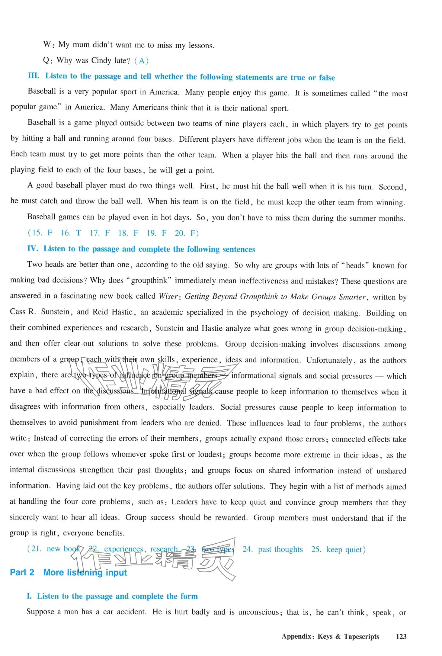 注:目前有些书本章节名称可能整理的还不是很完善,但都是按照顺序排列的,请同学们按照顺序仔细查找。练习册 2024年全新英语听力八年级全一册人教版提高版 答案主要是用来给同学们做完题方便对答案用的,请勿直接抄袭。