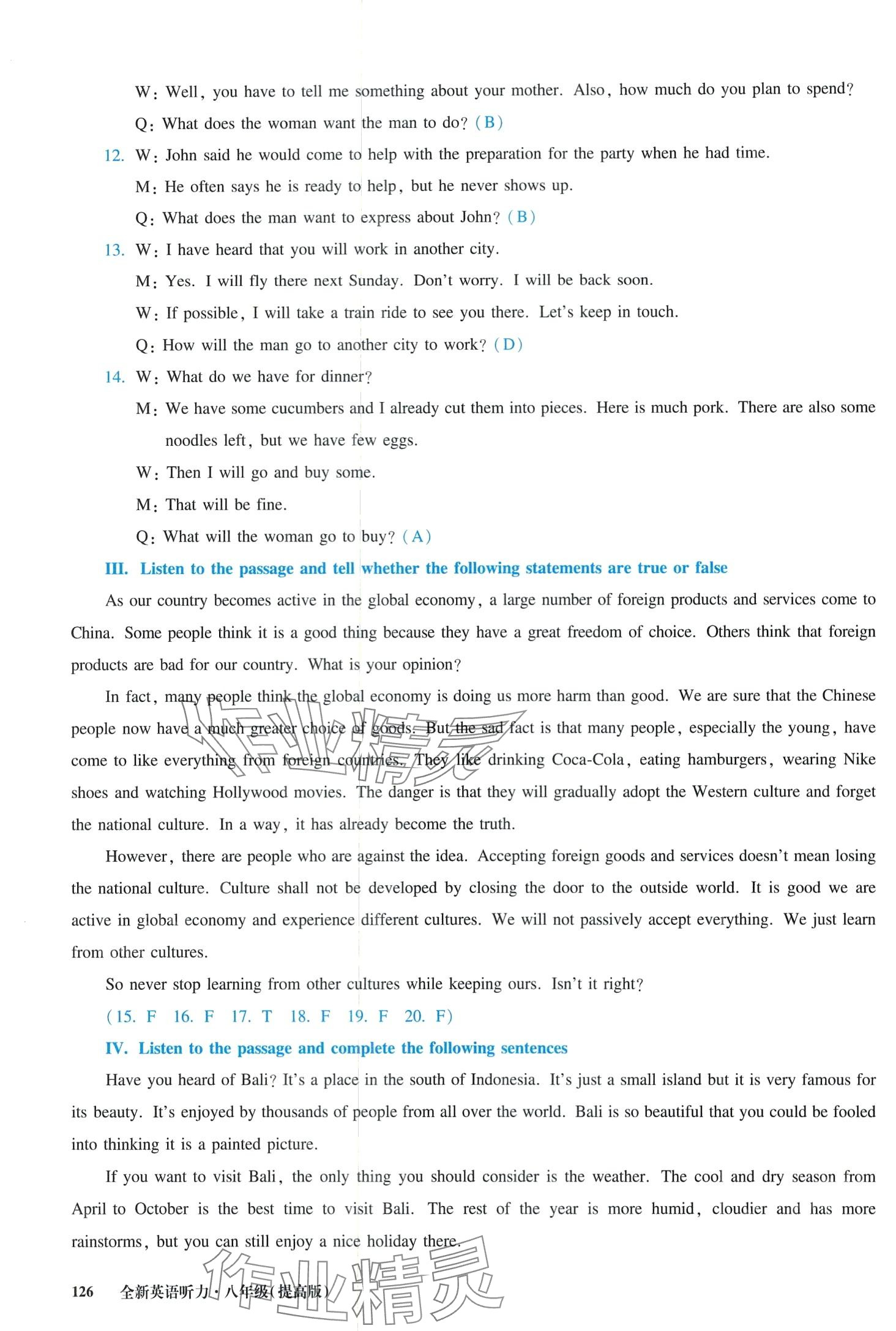 注:目前有些书本章节名称可能整理的还不是很完善,但都是按照顺序排列的,请同学们按照顺序仔细查找。练习册 2024年全新英语听力八年级全一册人教版提高版 答案主要是用来给同学们做完题方便对答案用的,请勿直接抄袭。