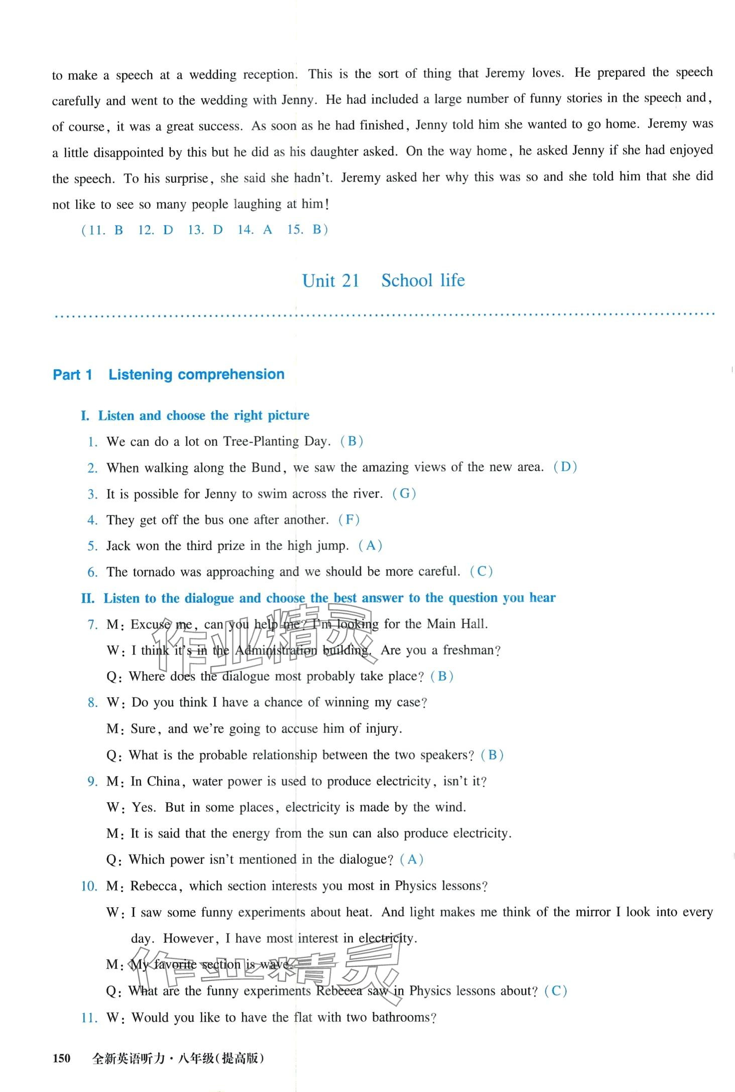 注:目前有些书本章节名称可能整理的还不是很完善,但都是按照顺序排列的,请同学们按照顺序仔细查找。练习册 2024年全新英语听力八年级全一册人教版提高版 答案主要是用来给同学们做完题方便对答案用的,请勿直接抄袭。