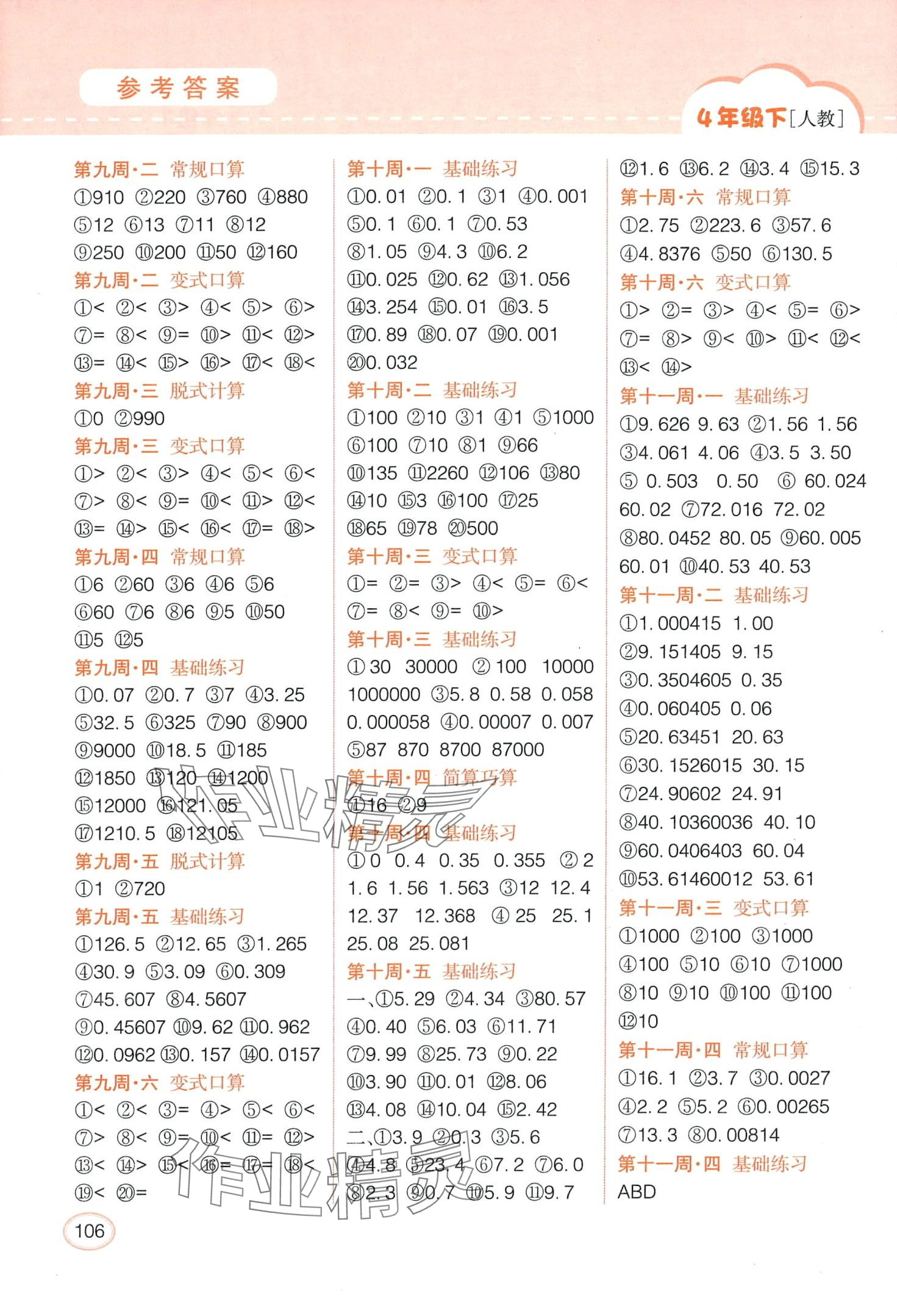 注:目前有些书本章节名称可能整理的还不是很完善,但都是按照顺序排列的,请同学们按照顺序仔细查找。练习册 2024年同步口算题卡四年级数学下册人教版 答案主要是用来给同学们做完题方便对答案用的,请勿直接抄袭。